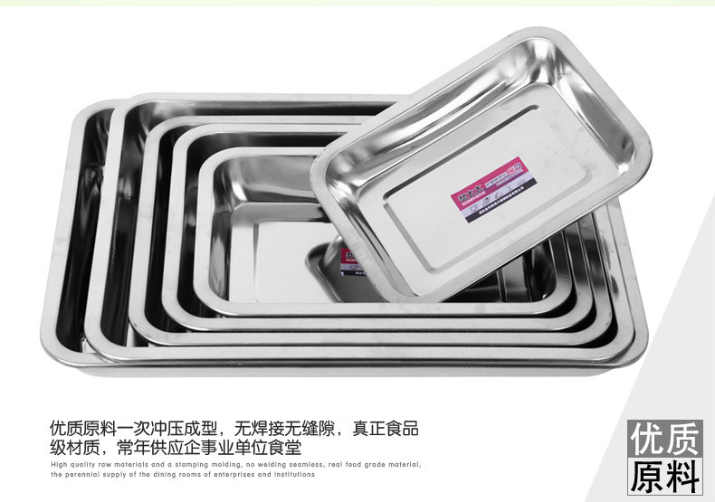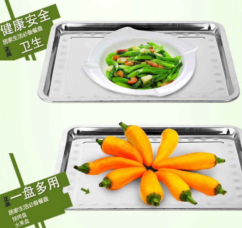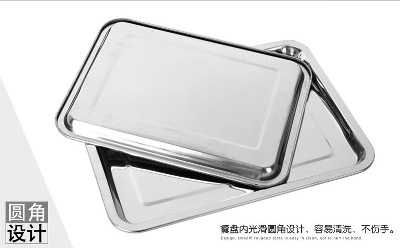 스테인레스 스틸 사각 접시 두꺼운 스테인레스 스틸 플레이트 직사각형 트레이 디너 플레이트 바베큐 접시 얕은 밥 접시 호텔 접시스토어 가기