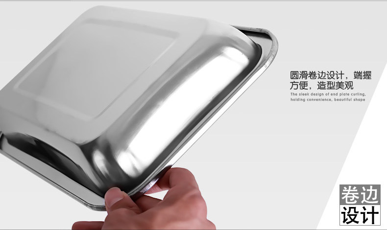 스테인레스 스틸 사각 접시 두꺼운 스테인레스 스틸 플레이트 직사각형 트레이 디너 플레이트 바베큐 접시 얕은 밥 접시 호텔 접시