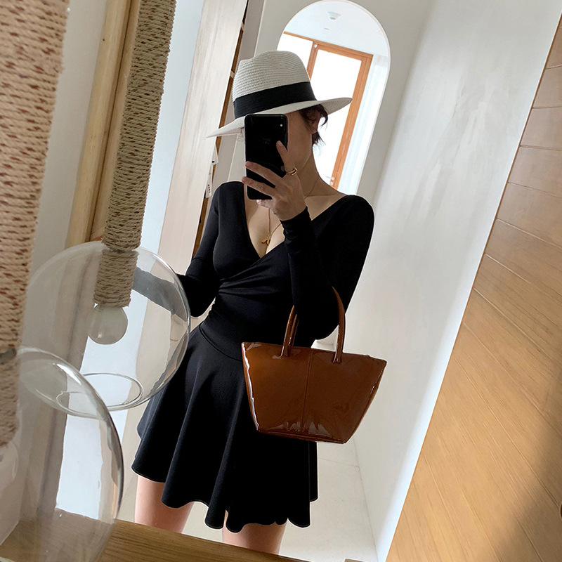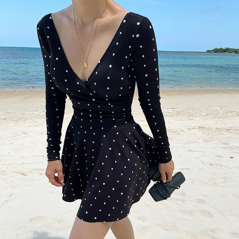 수영복 여성용 원피스 한국식 스커트 스타일 수영 세트 학생용 보수적 인 배꼽 커버 슬리밍 플랫 앵글 긴팔 자외선 차단제 온천 수영복스토어 가기