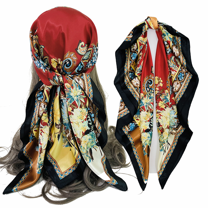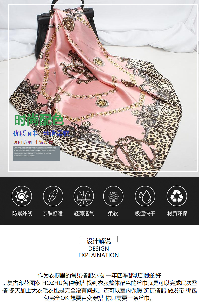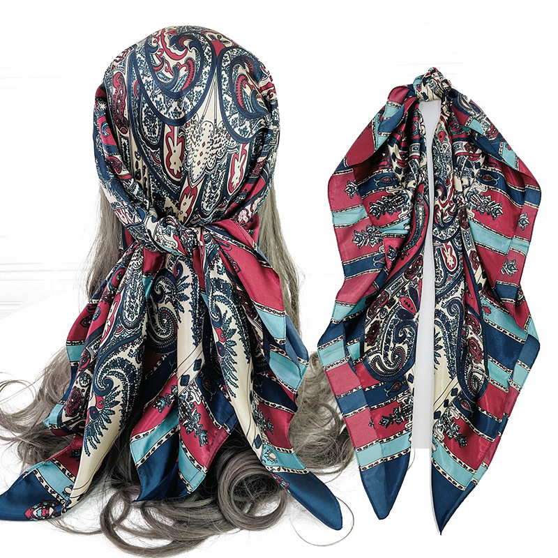 크로스보더 히잡 클래식 인조 실크 새틴 스카프 러시아 스카프 레오파드 프린트 캐슈 프린트 스카프 헤드스카프스토어 가기