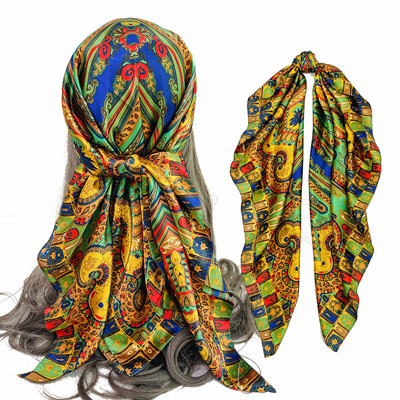 크로스보더 히잡 클래식 인조 실크 새틴 스카프 러시아 스카프 레오파드 프린트 캐슈 프린트 스카프 헤드스카프