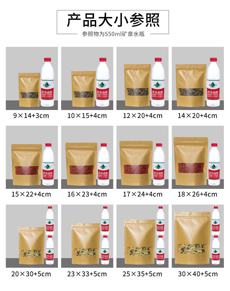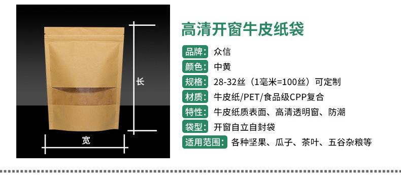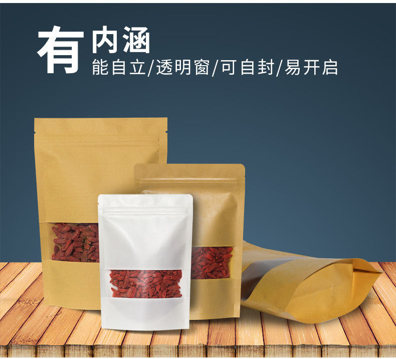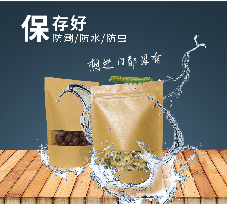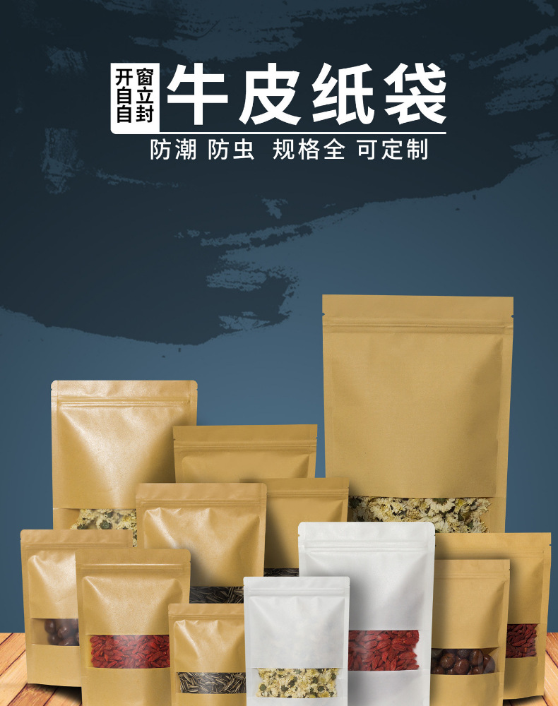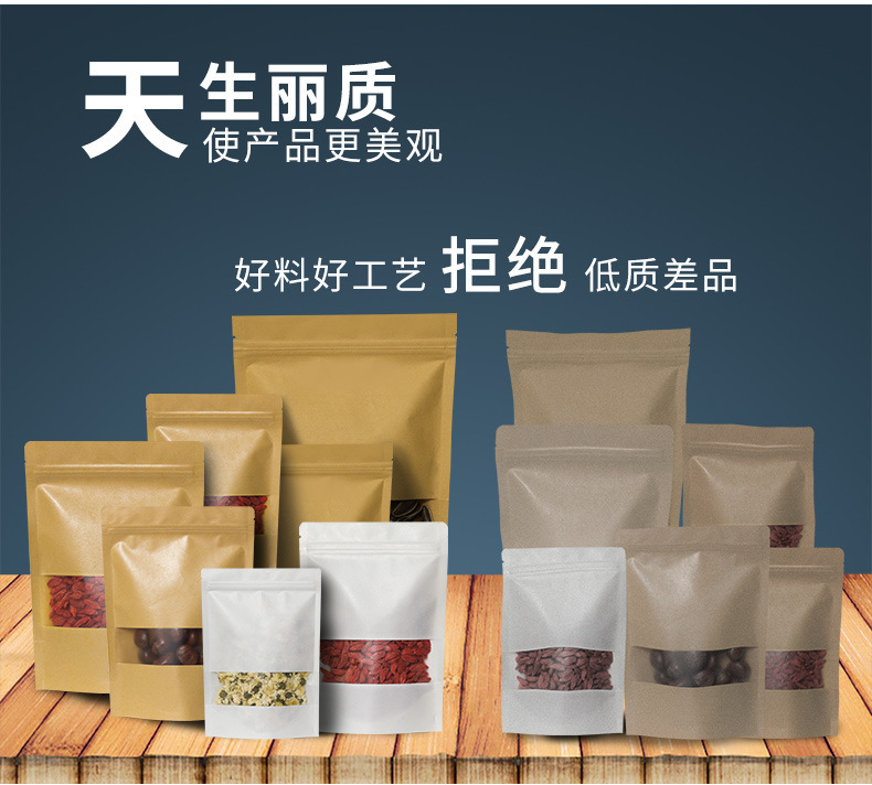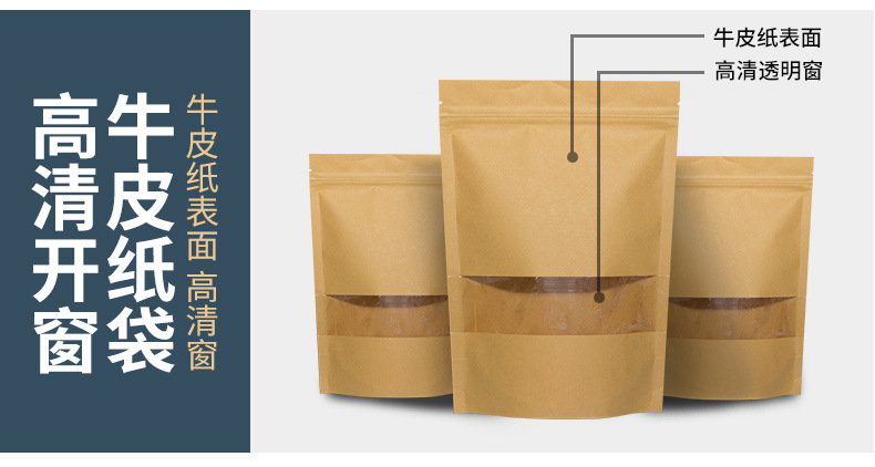 창문 자립 크래프트 종이 가방 자립 자체 밀봉 식품 가방 방습 차 포장 가방 말린 과일 포장 가방 전문 가방스토어 가기