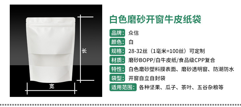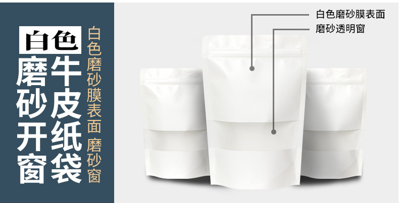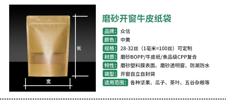 창문 자립 크래프트 종이 가방 자립 자체 밀봉 식품 가방 방습 차 포장 가방 말린 과일 포장 가방 전문 가방