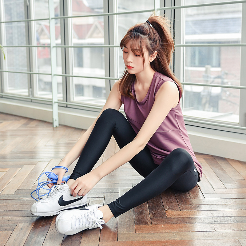한국식 요가 스포츠웨어 세트 여성용 민소매 속건 탑 피트니스 의류 여성용 요가 조끼 슬림 투피스 세트