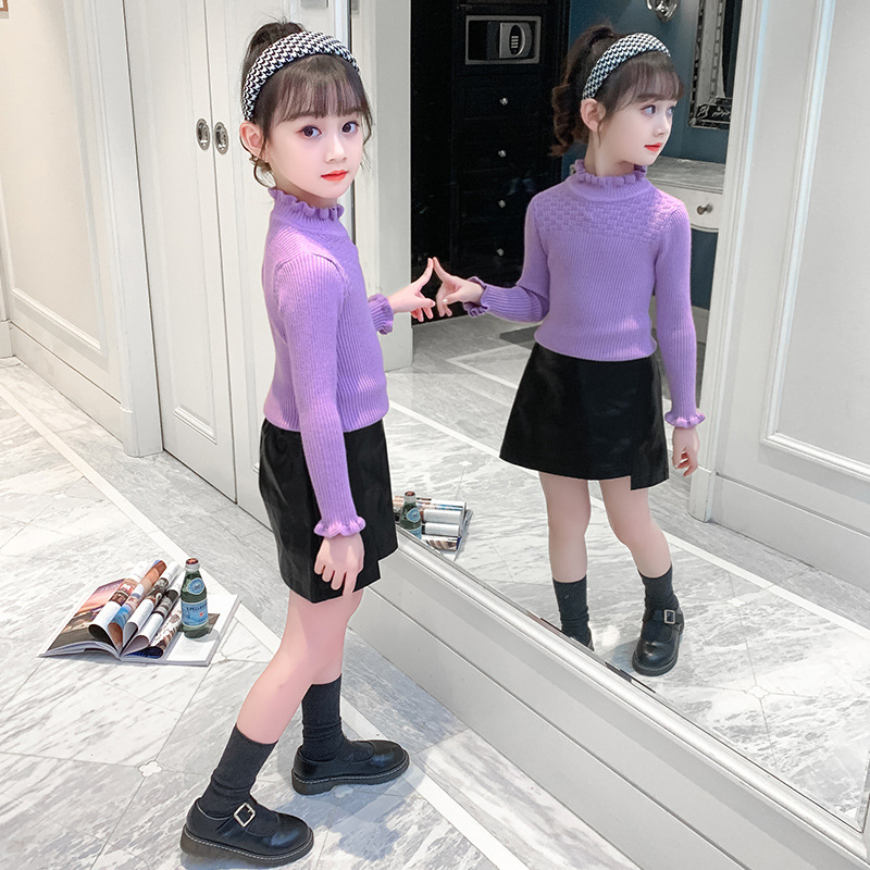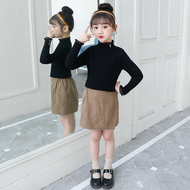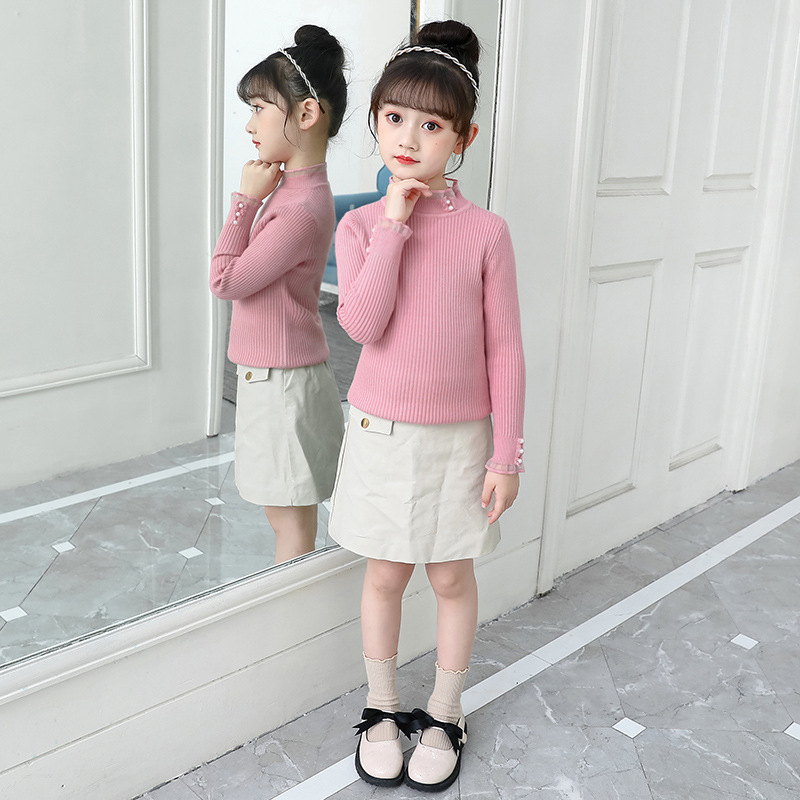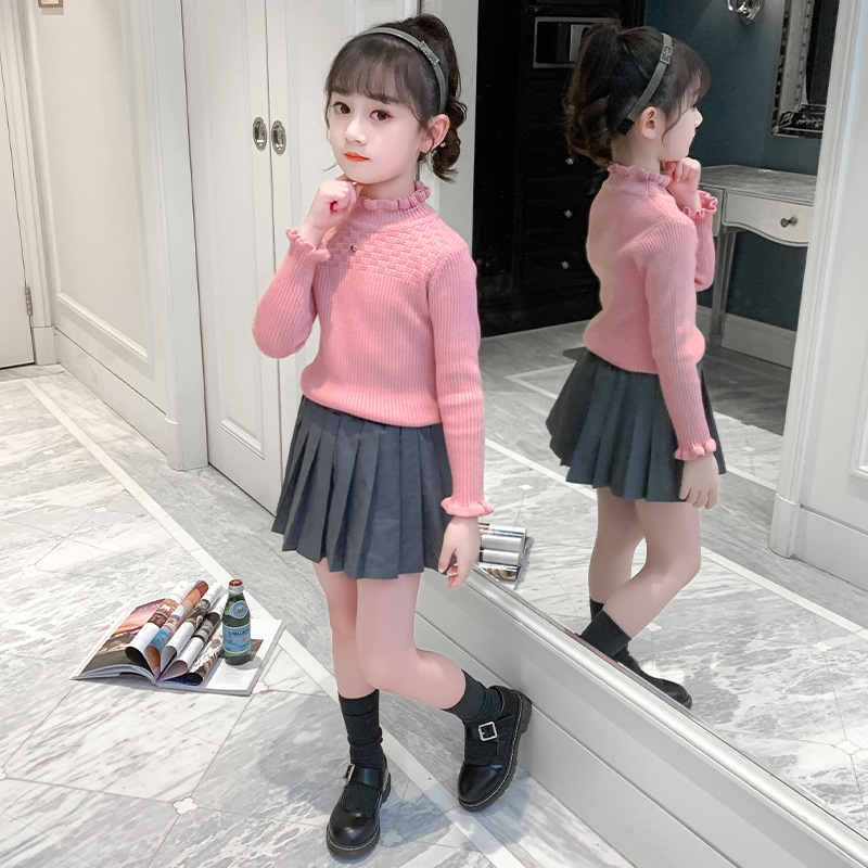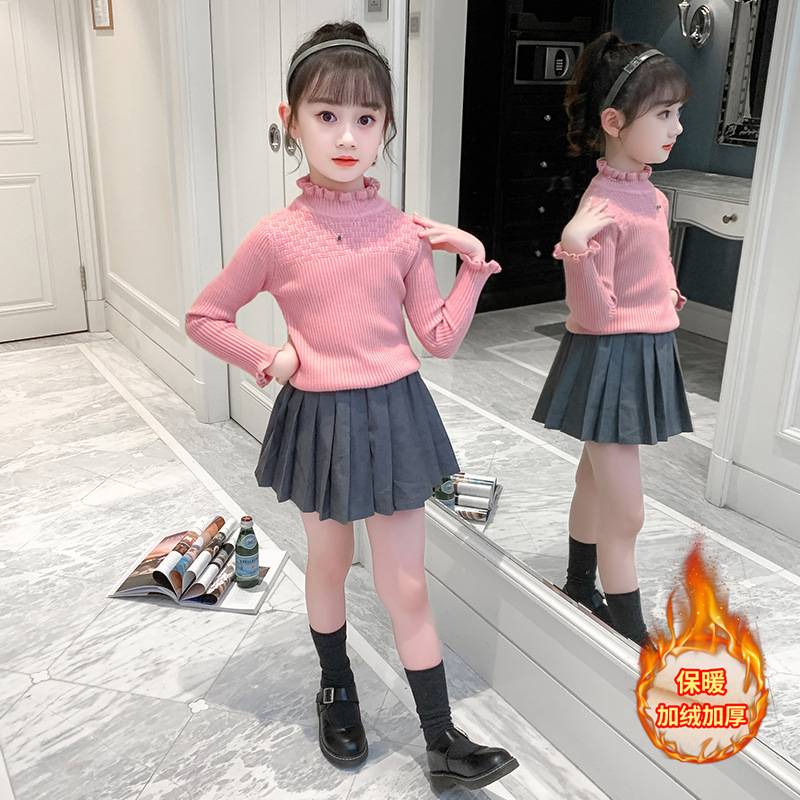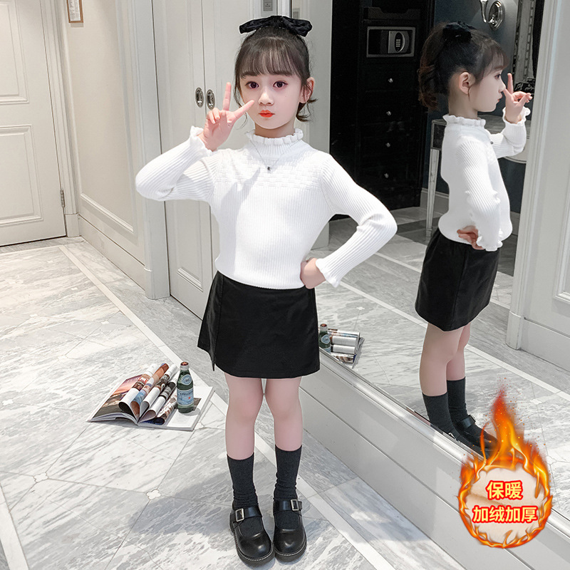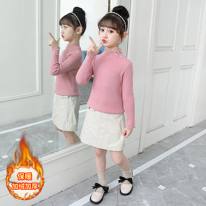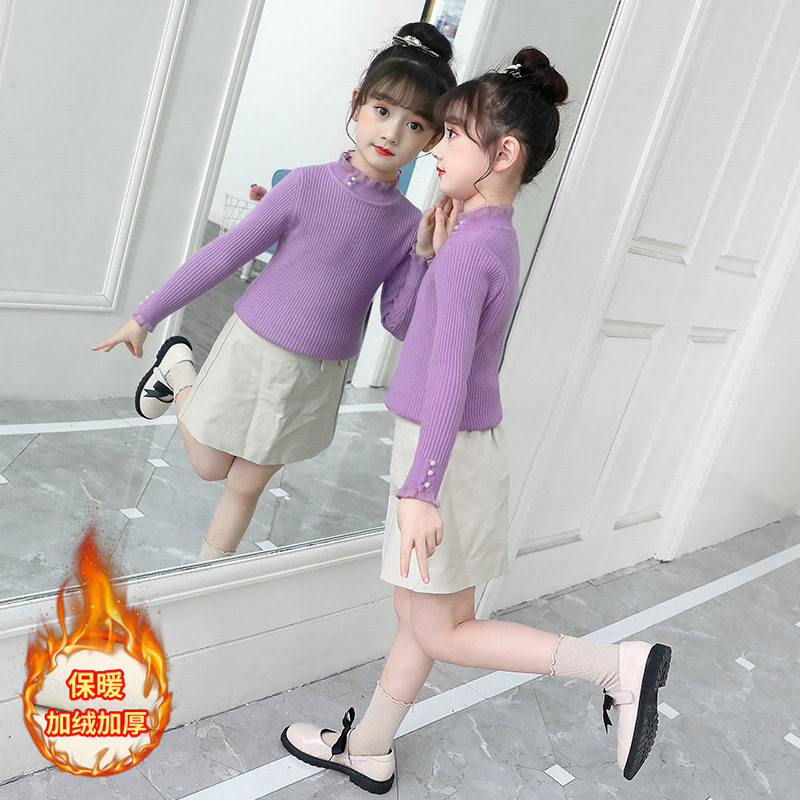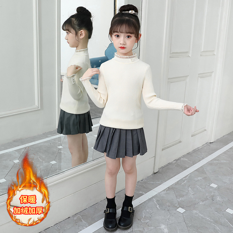여아 스웨터 2021 새로운 한국 스타일 슬림핏 스트레치 기모 두꺼운 니트 스웨터 스타일리스트 모든 매치 레이스 스웨터