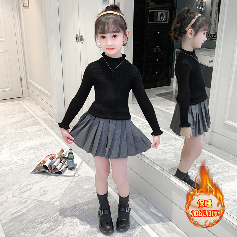여아 스웨터 2021 새로운 한국 스타일 슬림핏 스트레치 기모 두꺼운 니트 스웨터 스타일리스트 모든 매치 레이스 스웨터스토어 가기
