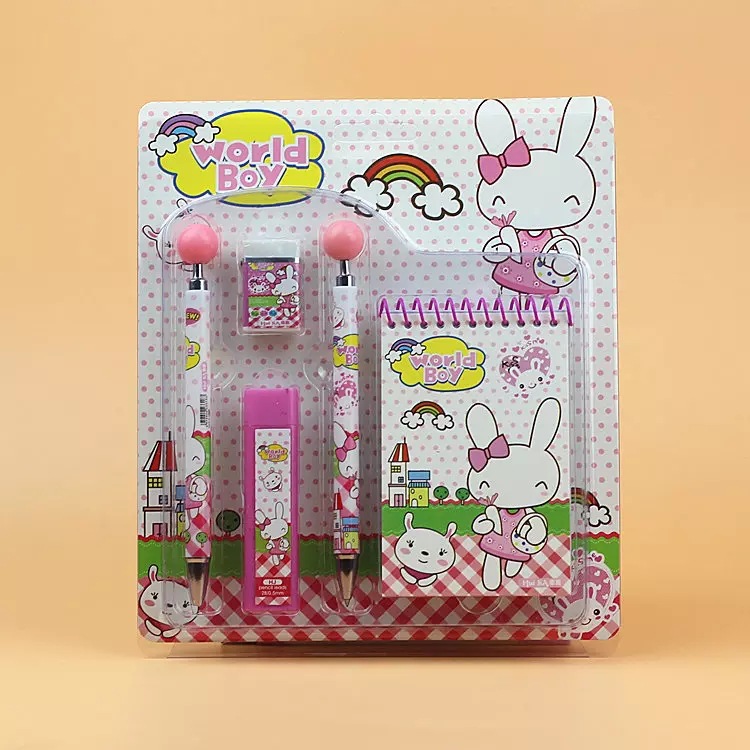 창조적 인 만화 학습 문구 세트 자동 연필 볼펜 노트북 학습 용품 도매
