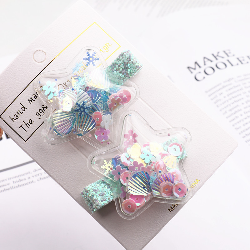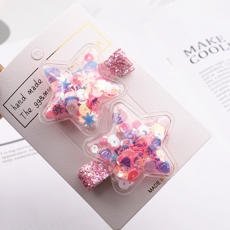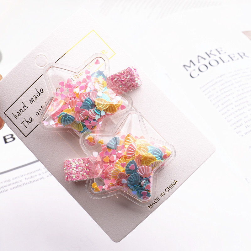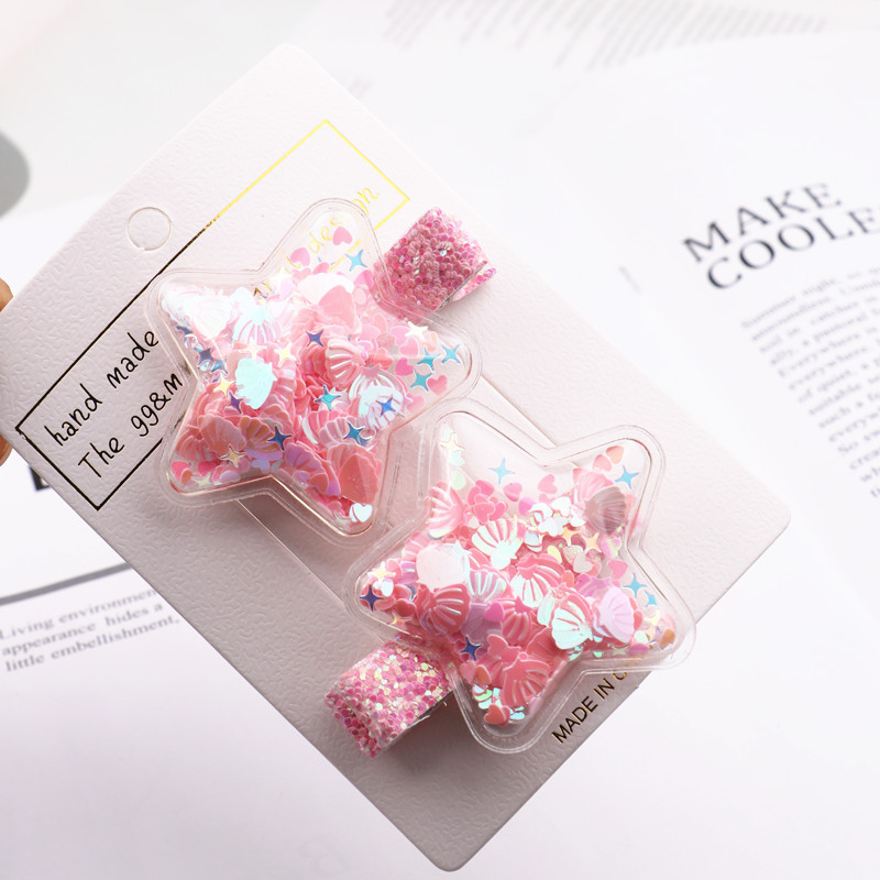 GG&MM 한국판 어린이 헤어 액세서리 하트 모양 샤워글리치 학생용 덕빌 클립 앞머리 클립 사이드 클립 세트 별 모양스토어 가기