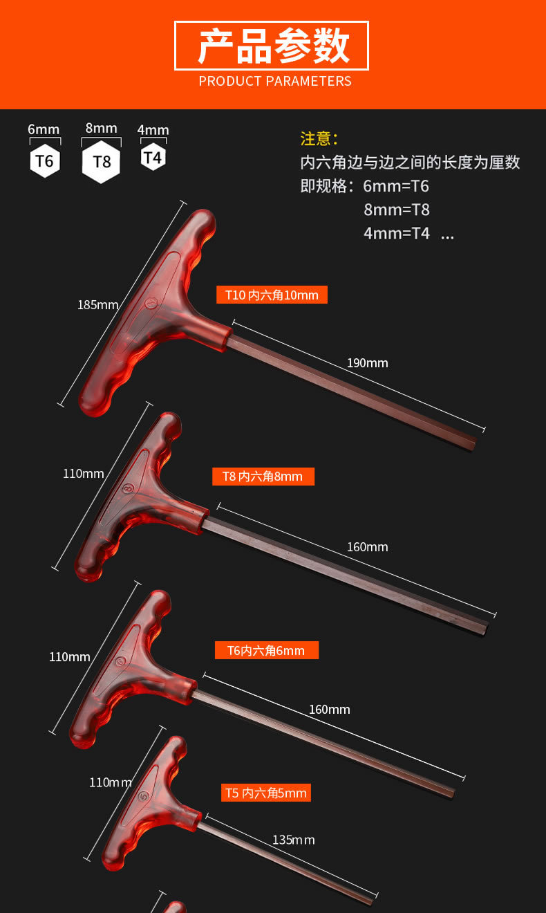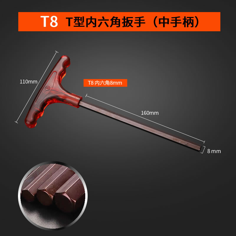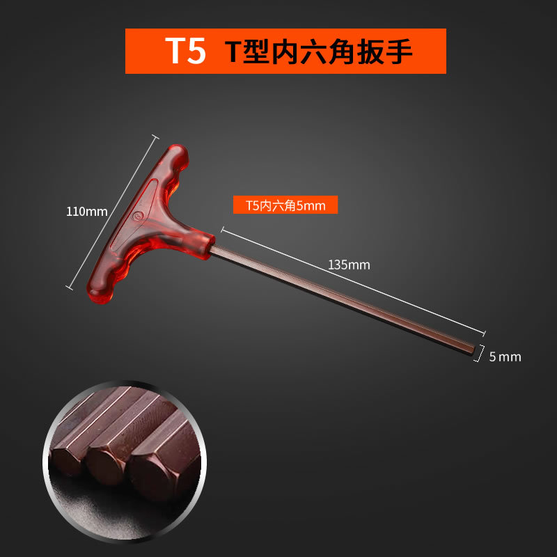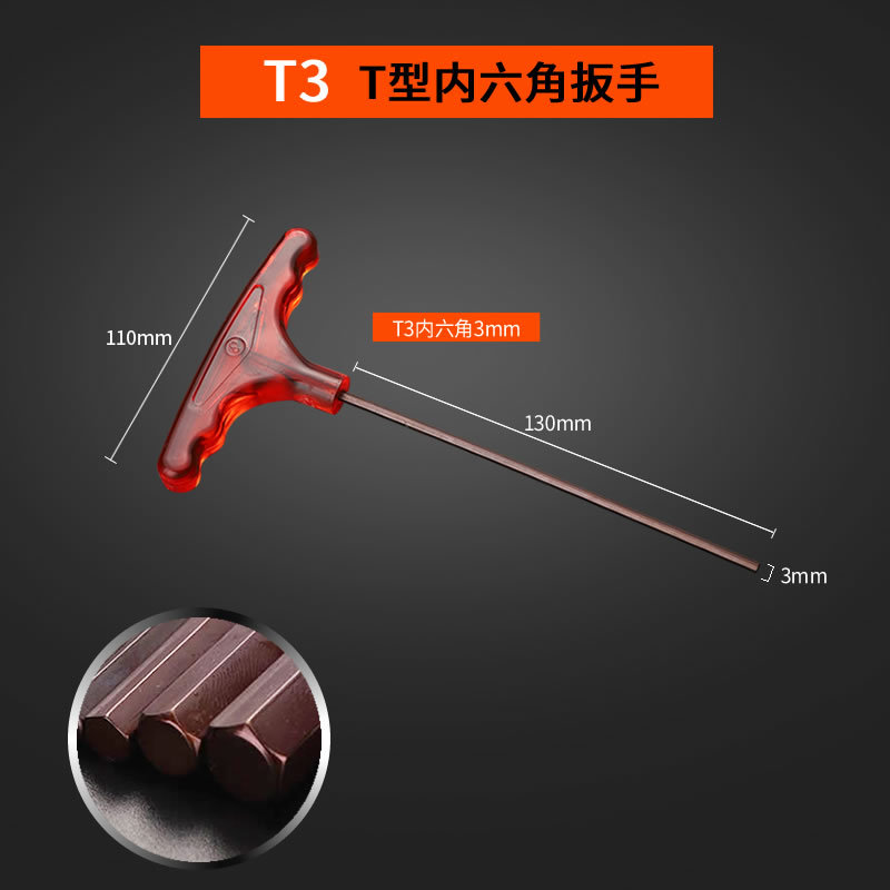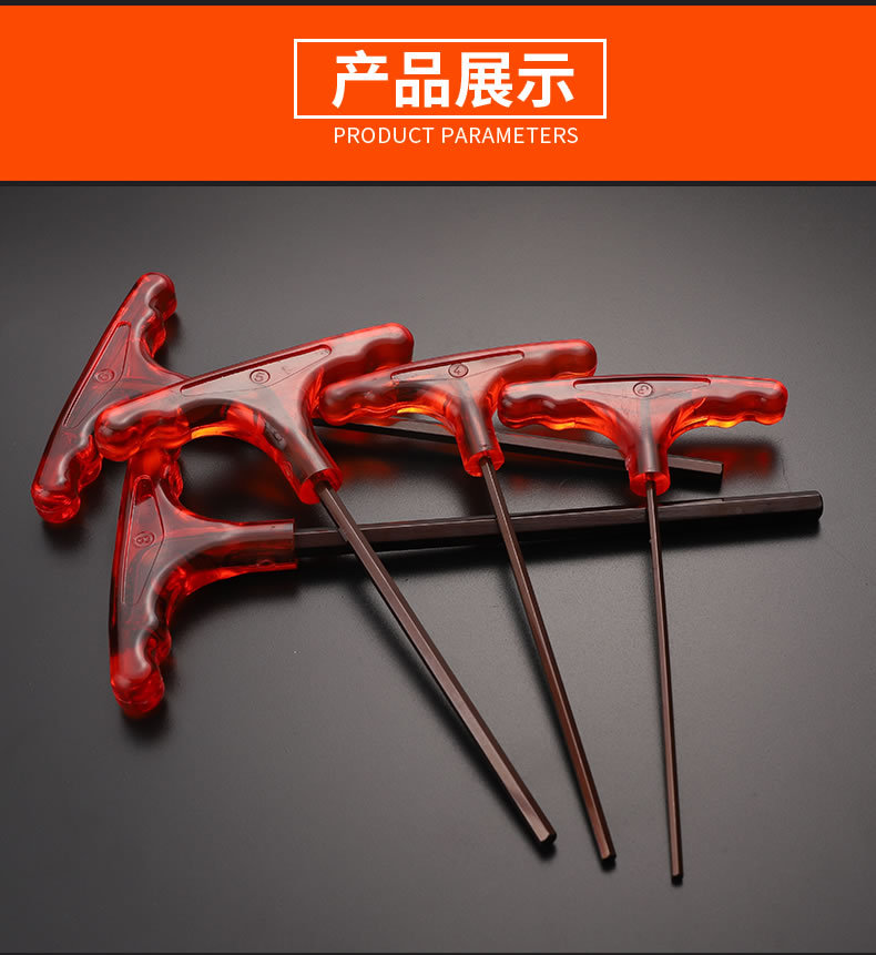 T型内六角扳手采用了S2工业级钢材,耐用,防磨损;