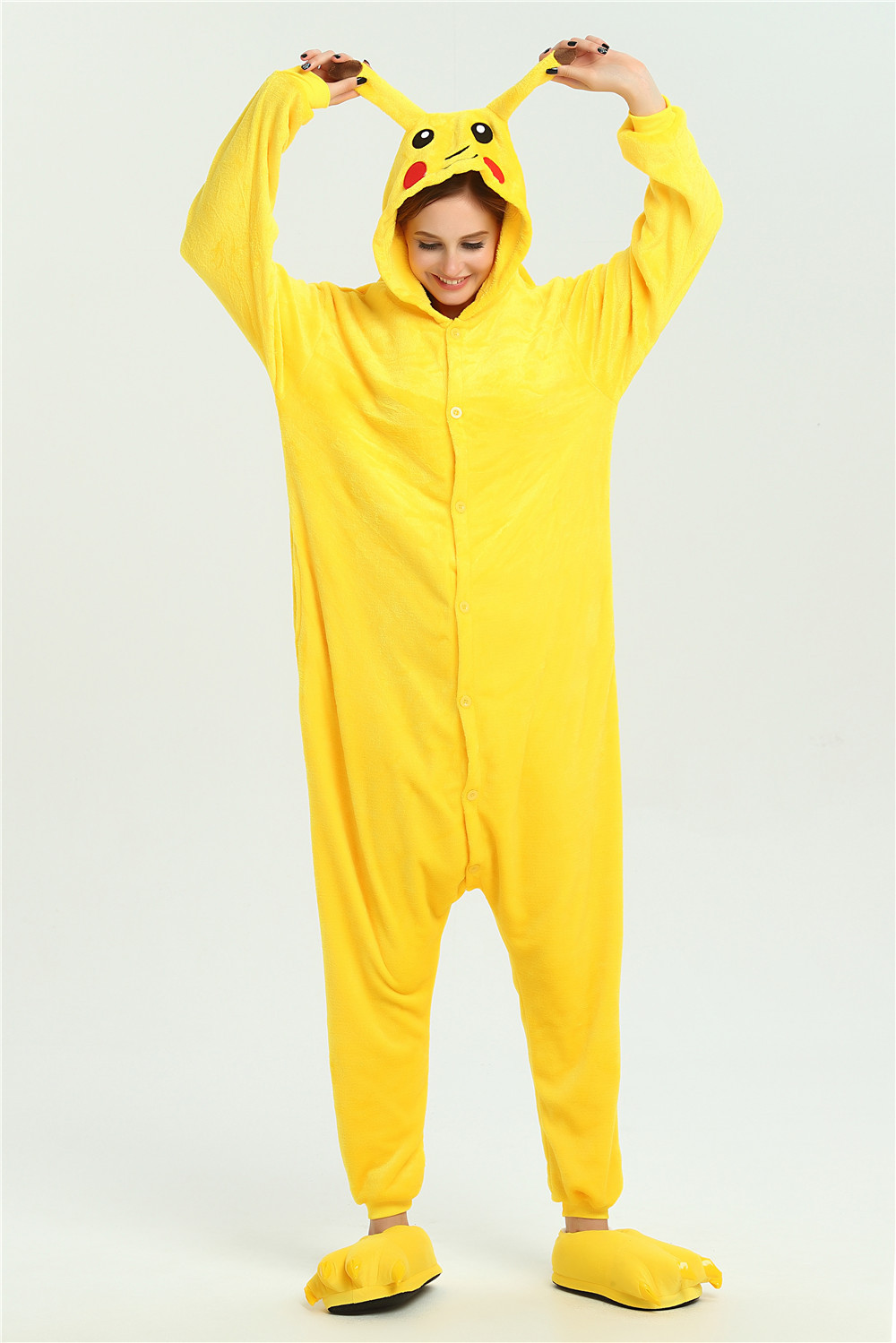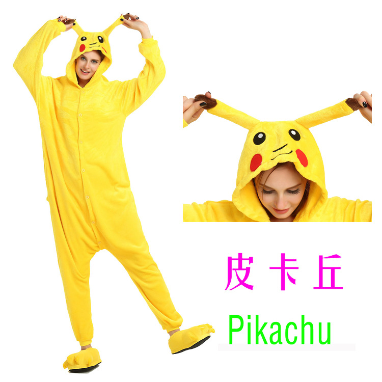 플란넬 귀여운 피카추 동물 만화 원피스 잠옷 여성 겨울 홈웨어 의상스토어 가기