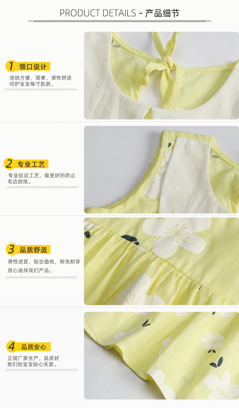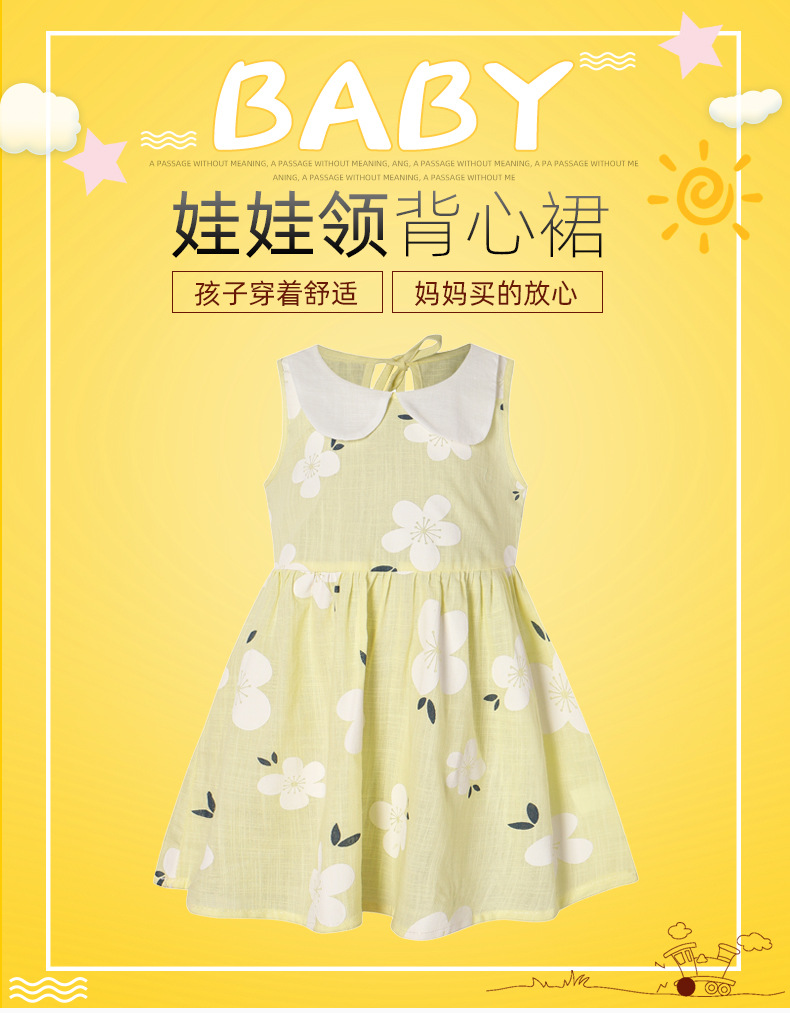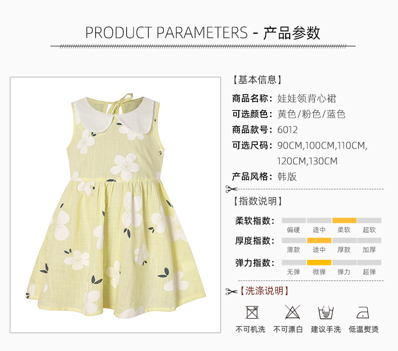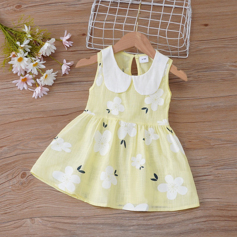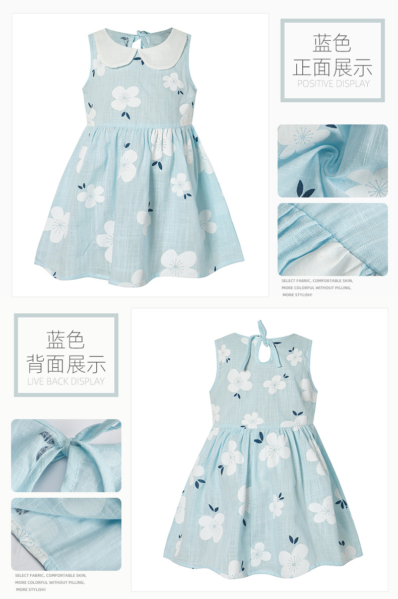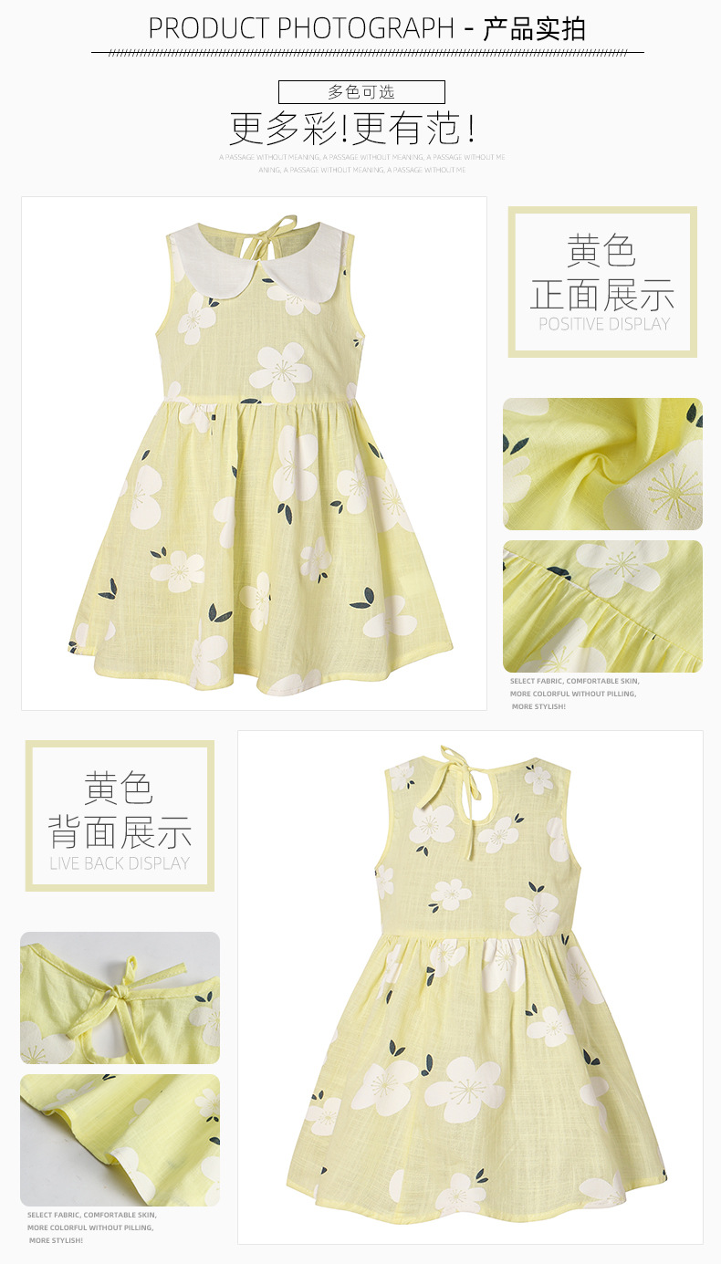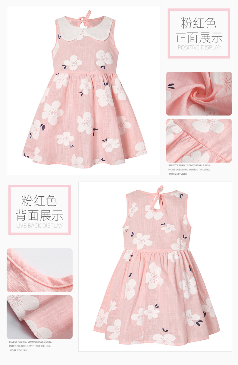 2025 여름 새 스타일 소녀 인쇄 한국 스타일 민소매 인형 칼라 드레스 코튼 린넨 조끼 드레스 어린이 공주 드레스