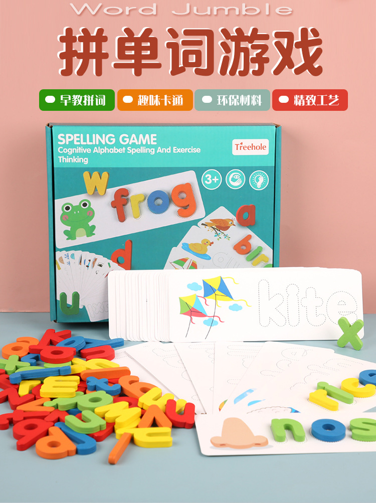 어린이 영어 글자 맞춤법 단어 게임 영어 연습 카드 유치원 조기 교육 교육 빌딩 블록 장난감