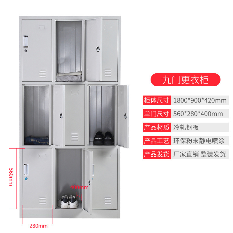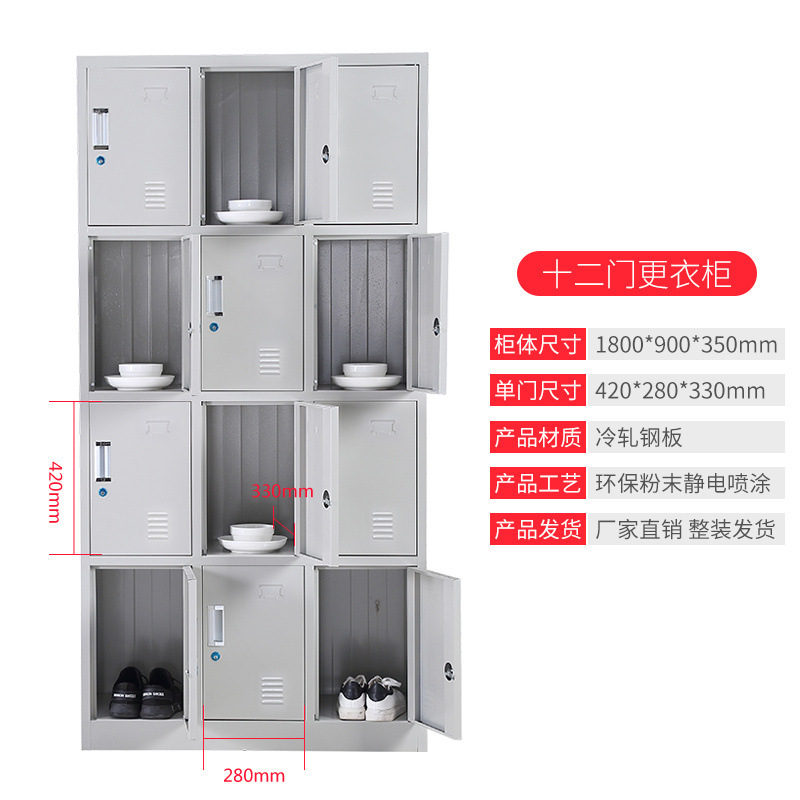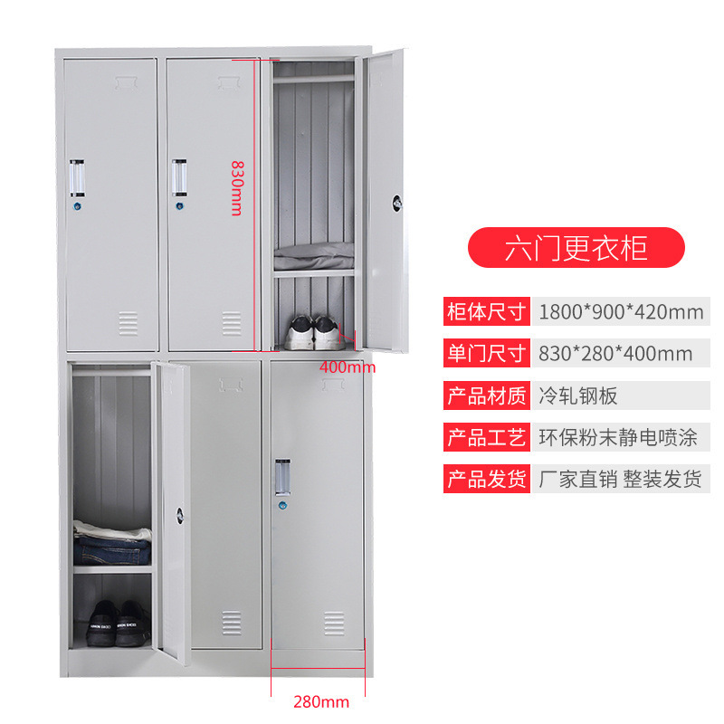 钢制更衣柜员工储物柜工厂宿舍更衣柜带锁铁皮存放收纳柜鞋柜碗柜