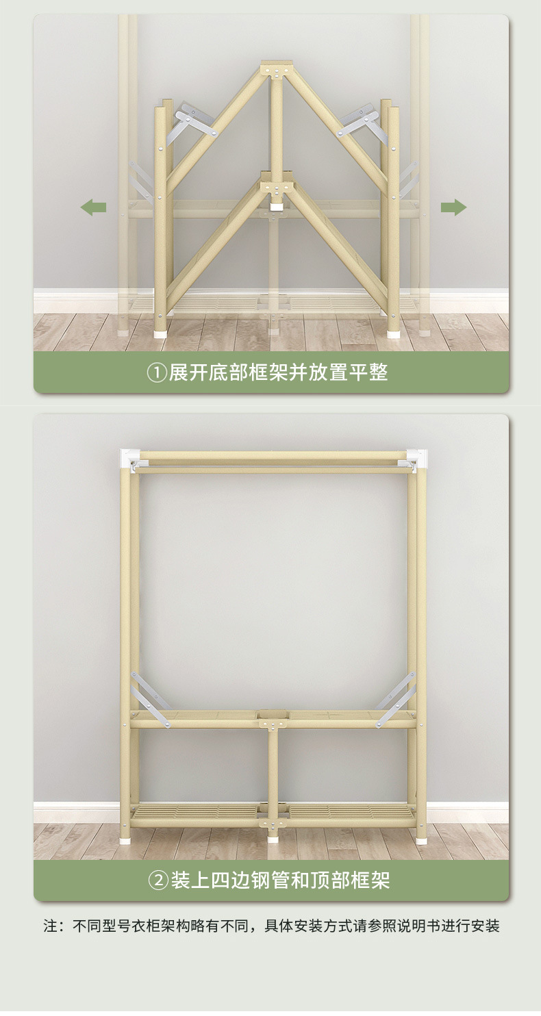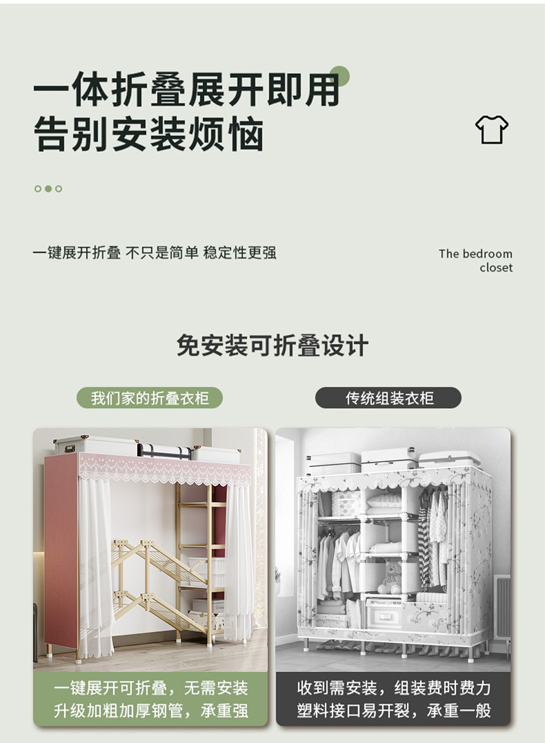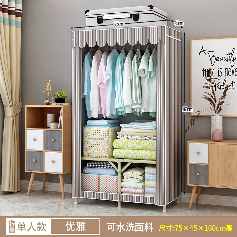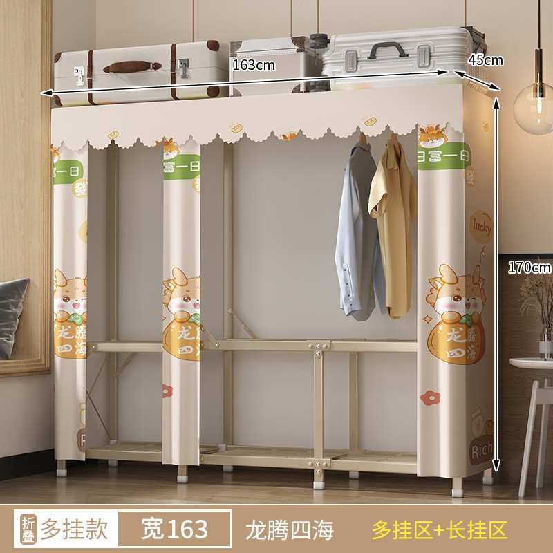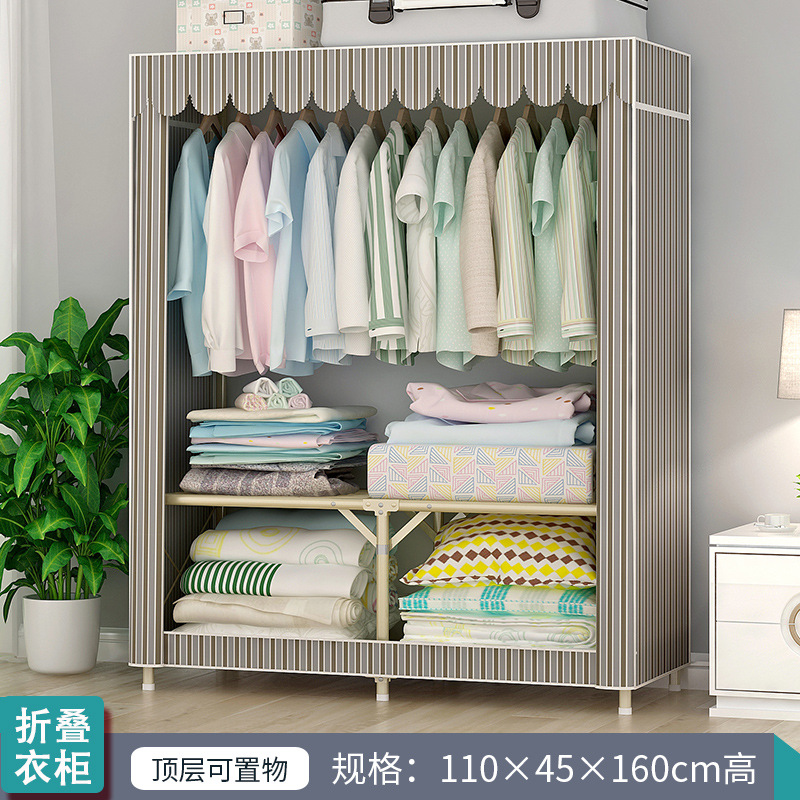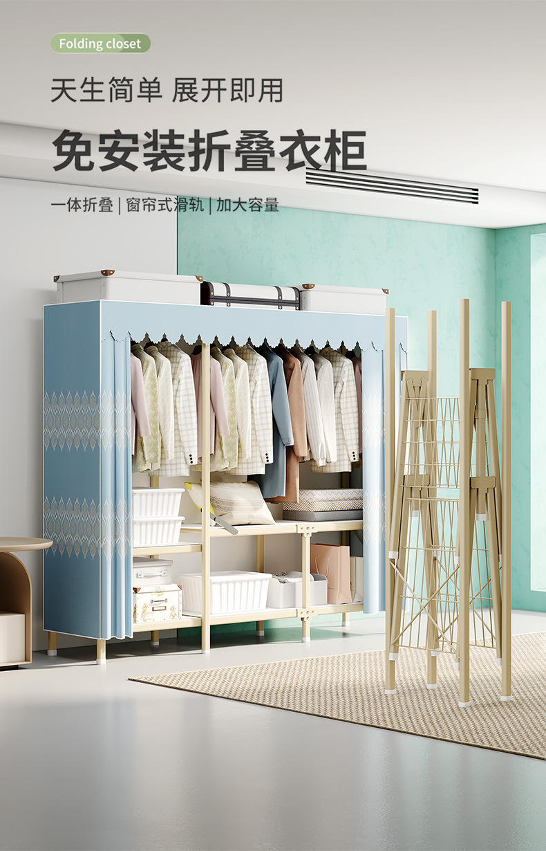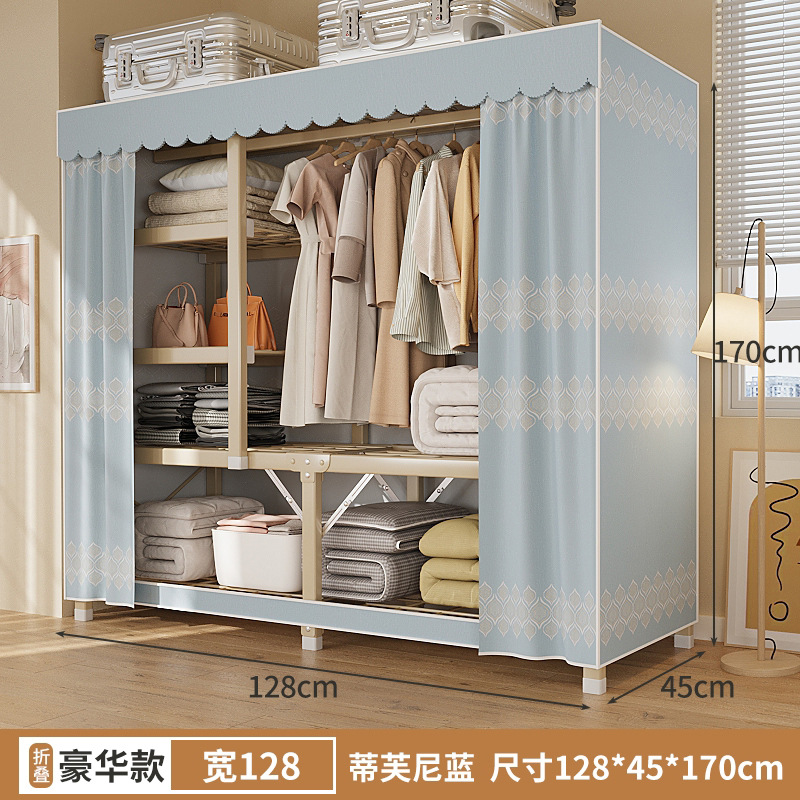 옷장 간단한 조립 접이식 천 옷장 임대 새로운 금색 강철 프레임 천 옷장 홈 침실스토어 가기