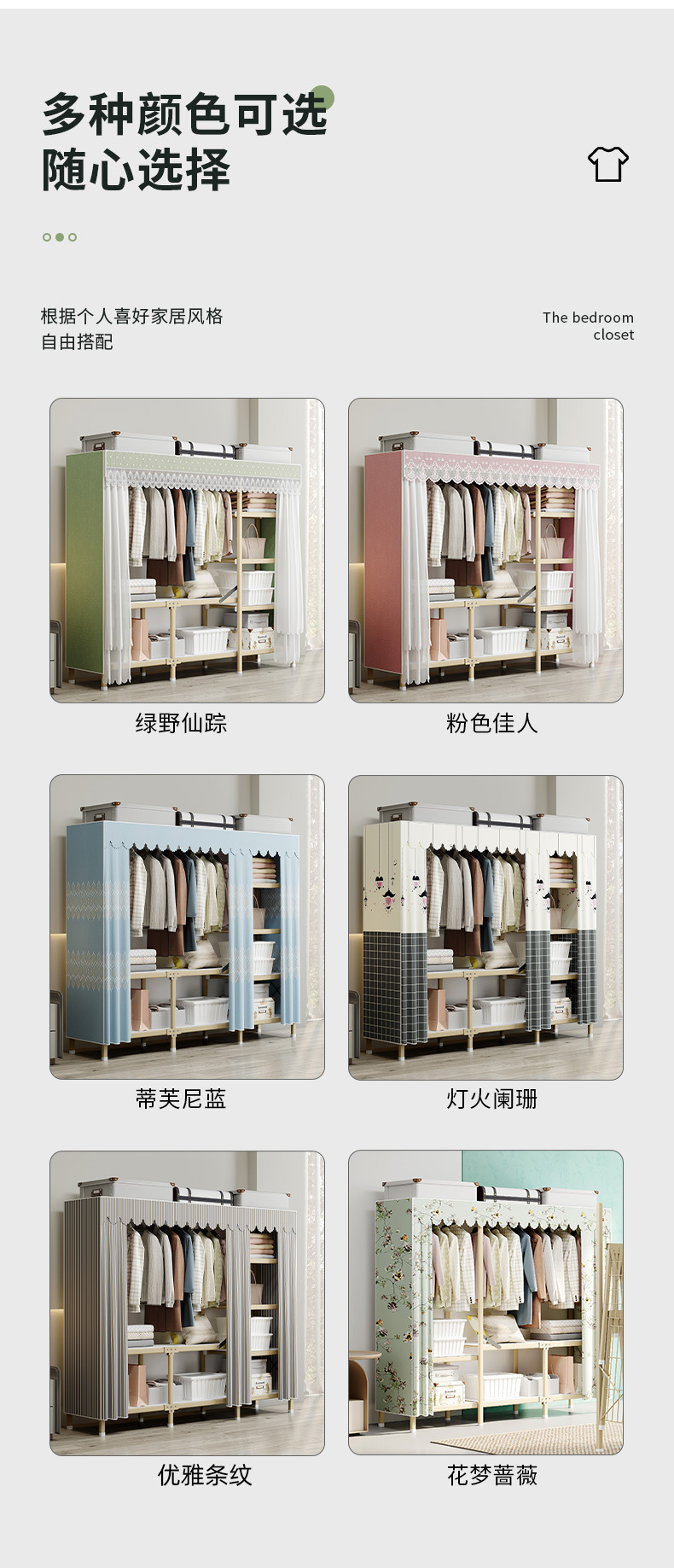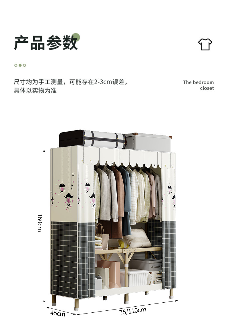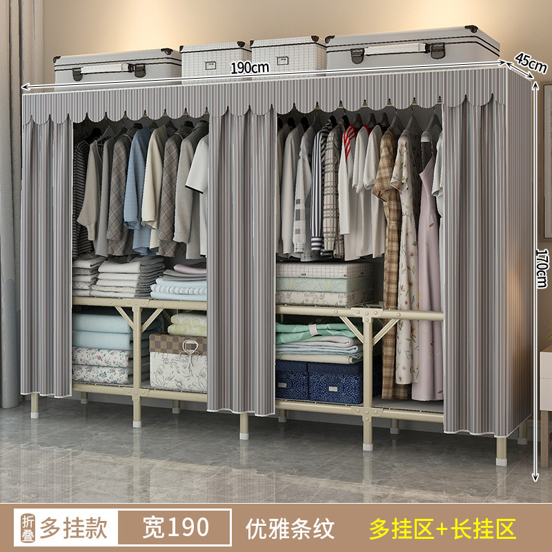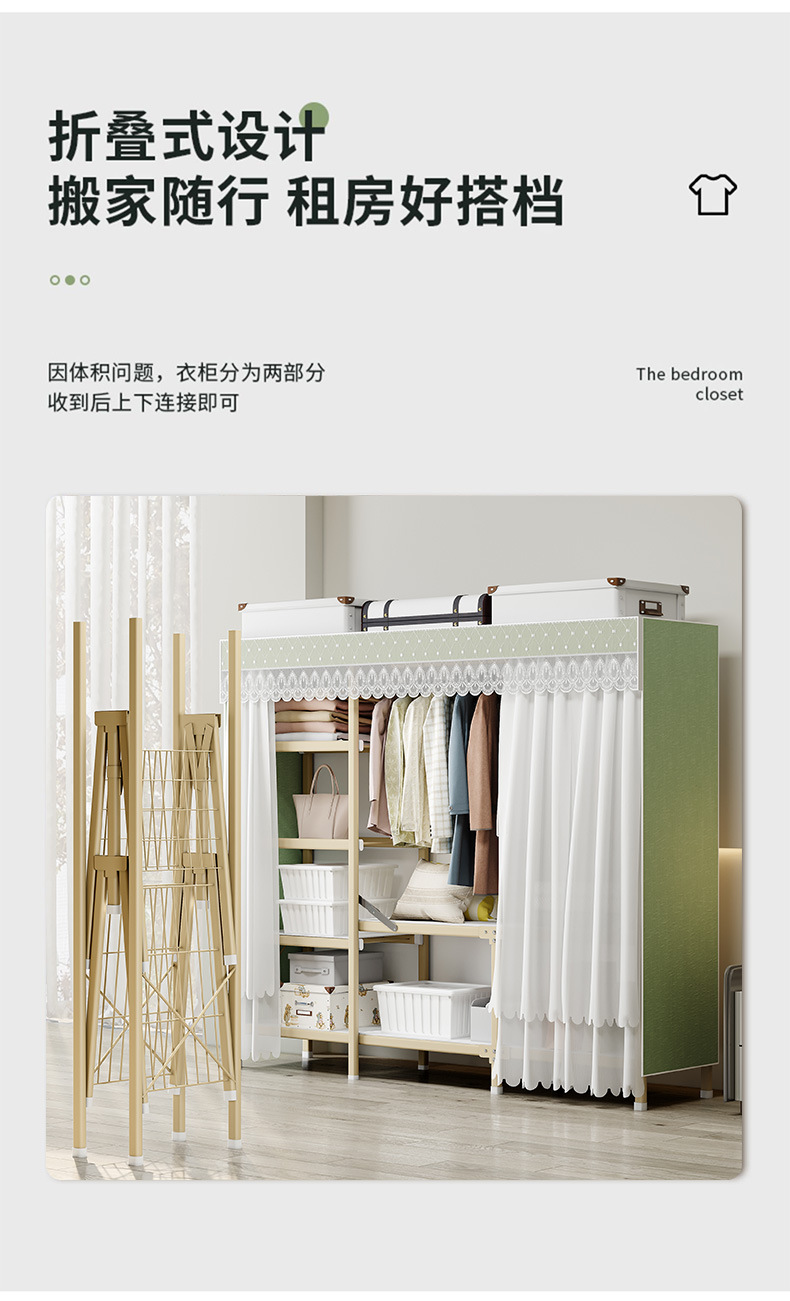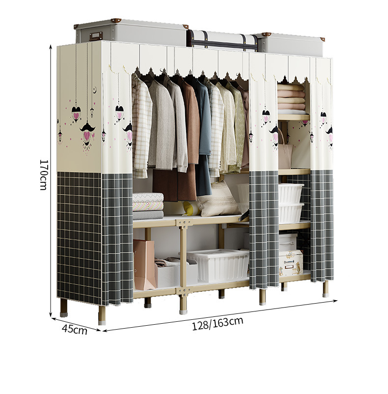 옷장 간단한 조립 접이식 천 옷장 임대 새로운 금색 강철 프레임 천 옷장 홈 침실