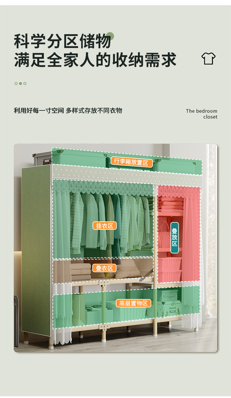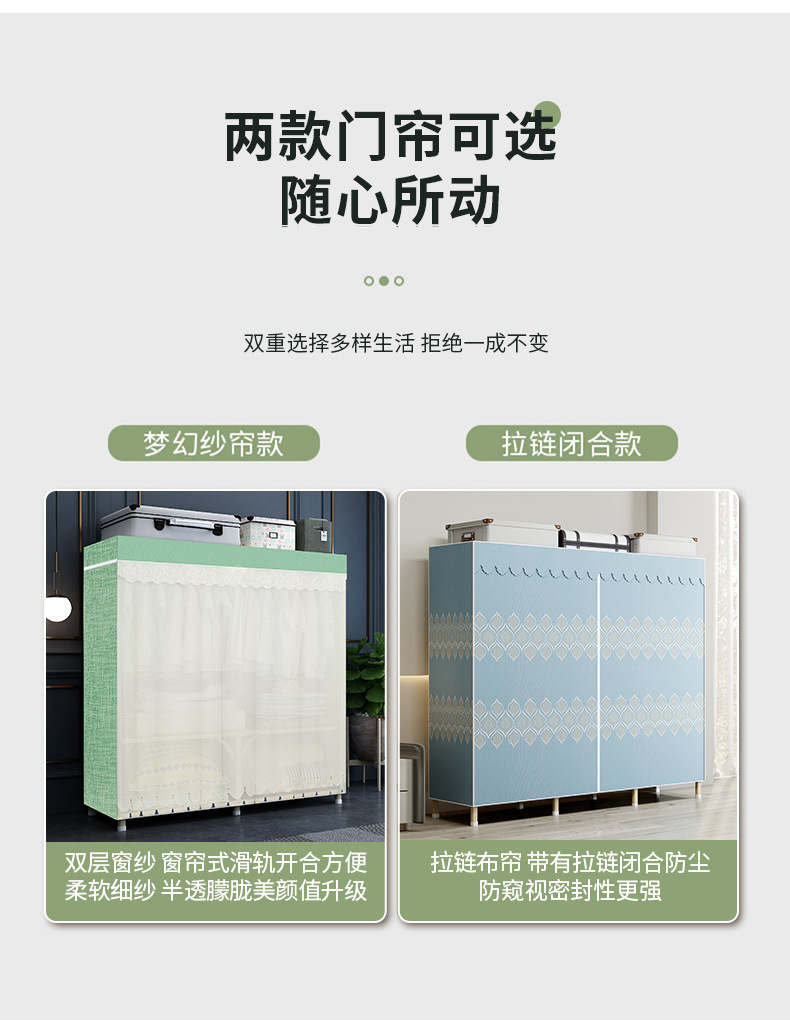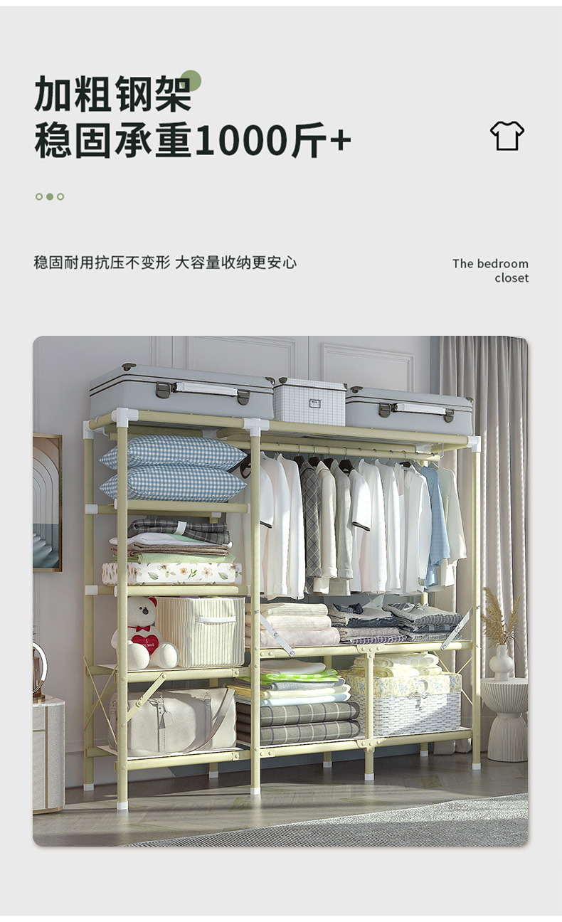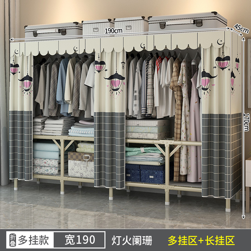 옷장 간단한 조립 접이식 천 옷장 임대 새로운 금색 강철 프레임 천 옷장 홈 침실