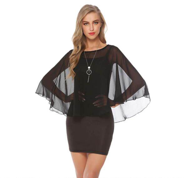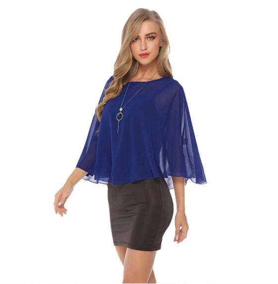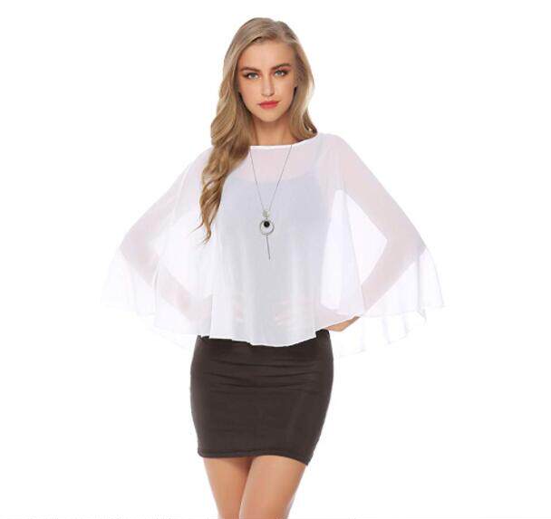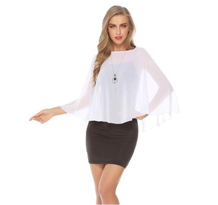 화이트 블랙 블루 쉬폰 셔츠 셔츠 얇은 라운드 넥 숄 가을 숄 신부 바지 작은 숄