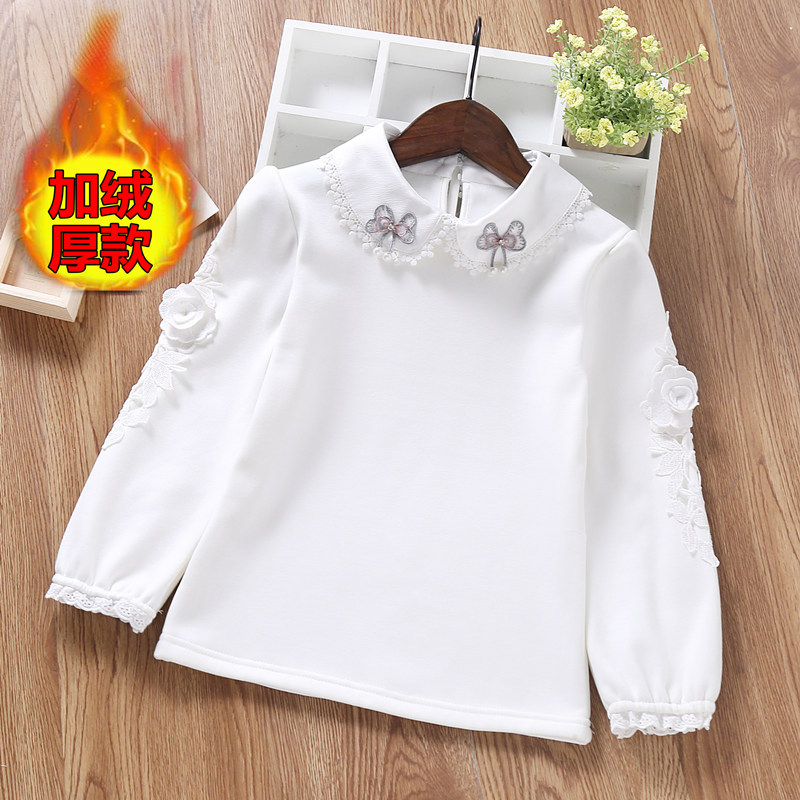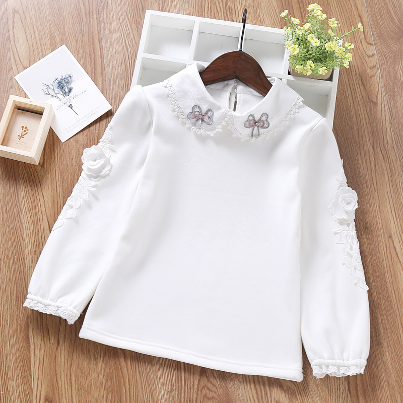 고급 아동용 티셔츠 한국식 여아 흰색 긴팔 셔츠 봄, 가을 신작 아동용 순면 작은 옷깃 탑 6