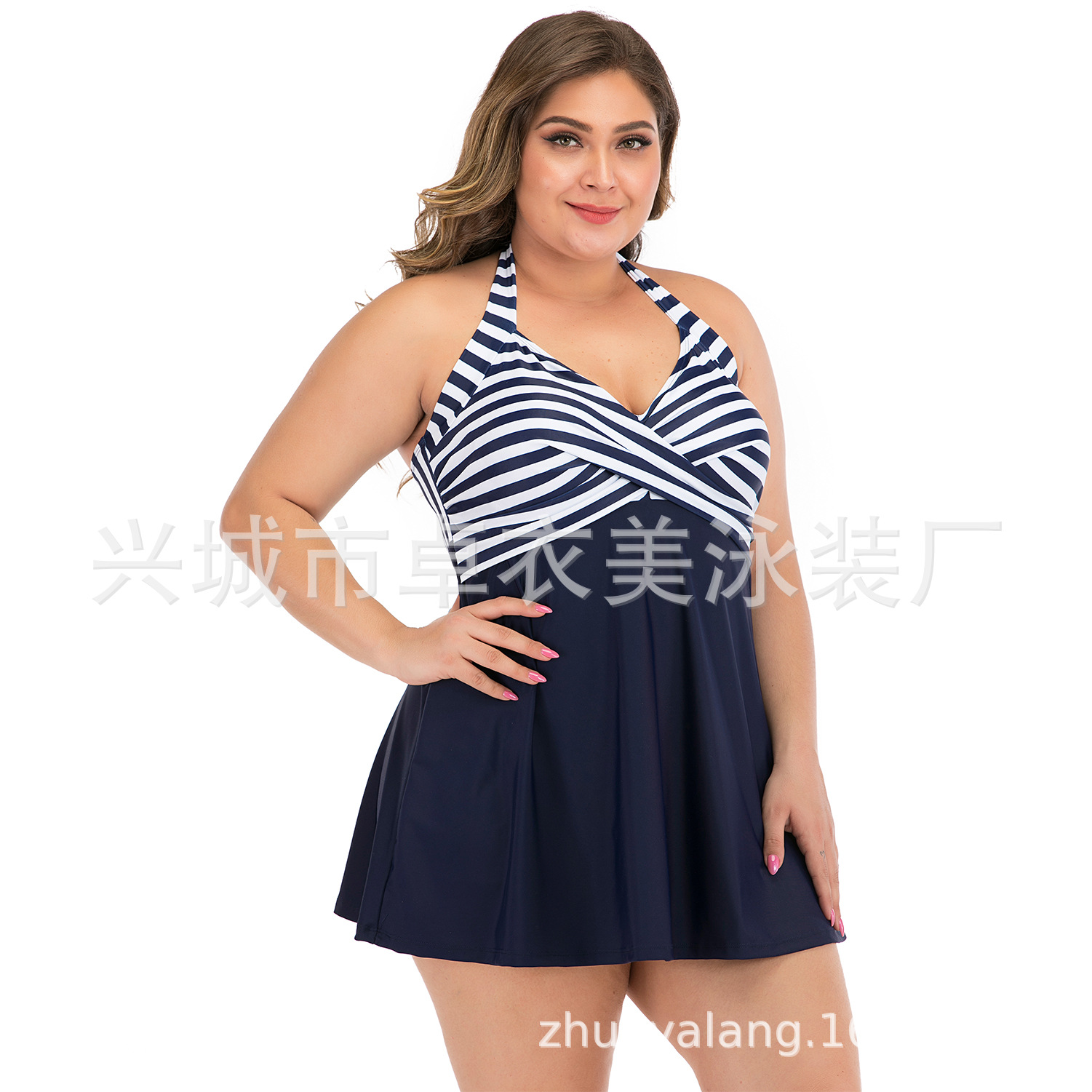 2021 유럽 및 미국 스트라이프 크로스 원피스 수영복, 배를 덮는 대형 플랫 코너 비키니, 고탄력 스포츠 스타일스토어 가기