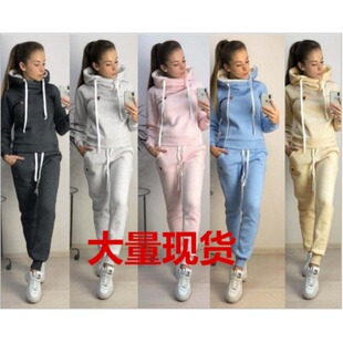 欧美女装秋冬季爆款新款抓绒时尚休闲运动套装卫衣