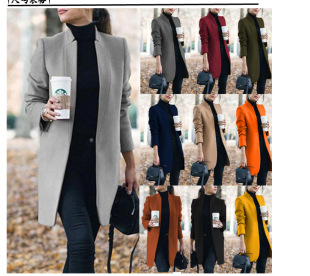 2021速卖通亚马逊ebay秋冬新款欧美时尚纯色立领毛呢外套大量现货