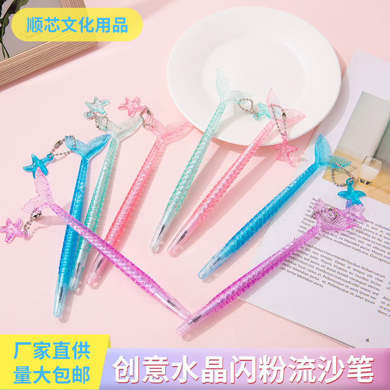 귀여운 만화 스타일 펜 크리 에이 티브 크리스탈 반짝이 모래 펜 피쉬 테일 요정 펜던트 젤 펜 서명 펜