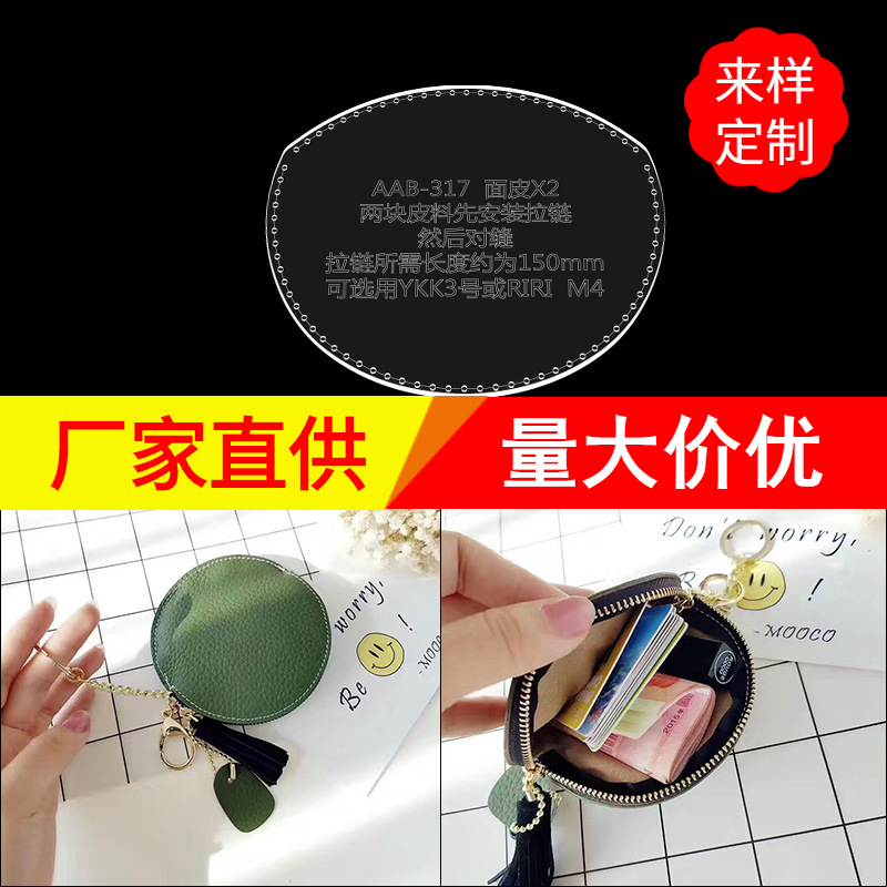 수제 가죽 가죽 만들기 지퍼 동전 지갑 동전 보관 가방 아크릴 에디션 드로잉 DIY 종이 격자스토어 가기