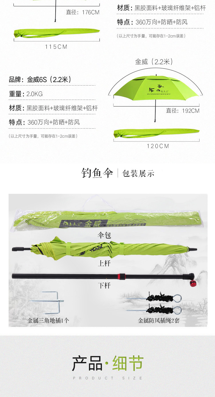 Jinwei Jiang Taigong 6s 낚시 우산 유니버설 2.2 m 2.4 m 태양 보호 비 방지 태양 그늘 낚시 우산 액세서리 목발 검은 색 접착제스토어 가기