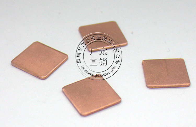 1)紫铜片尺寸:长1.5CM、宽1.5CM、厚度0.5-1.2MM 。