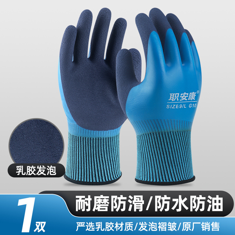 이중층 담근 두꺼운 노동 보호 장갑, 내유성 및 방수, 해수 작업 장갑, 내마모성 및 미끄럼 방지 라텍스 장갑
