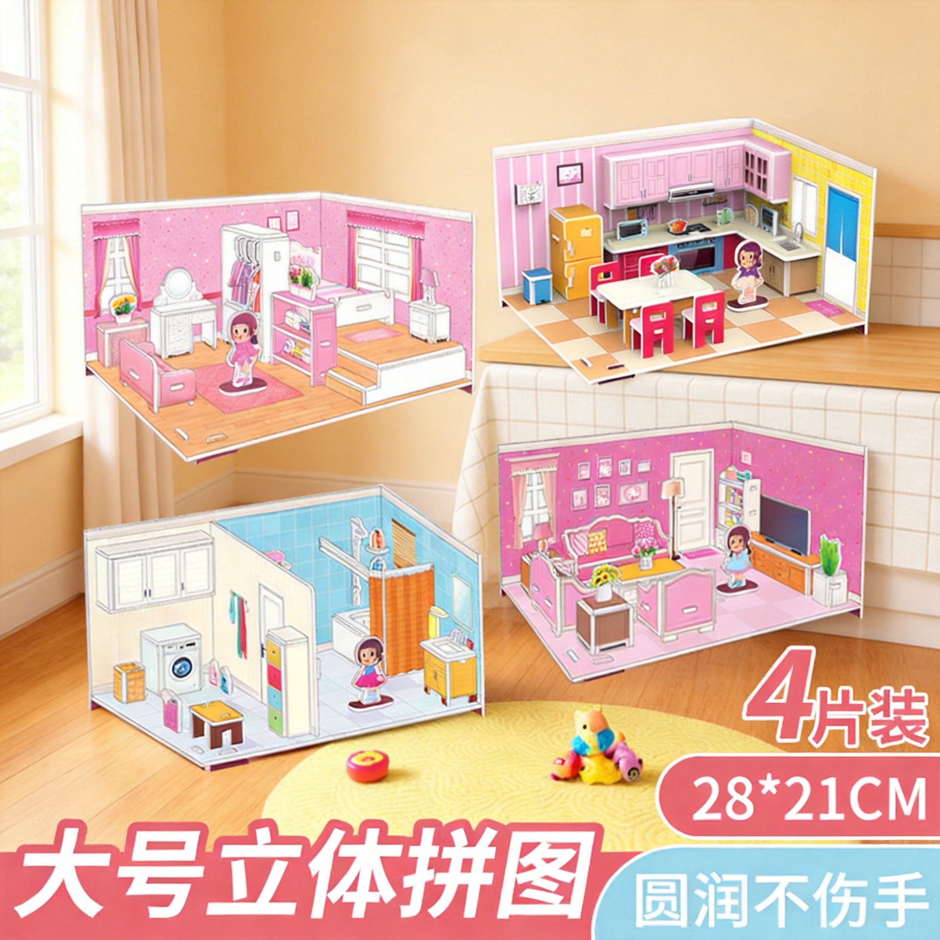 3D 입체 퍼즐 조립 수제 어린이 조기 교육용 교육 완구 여자아이 장난감 DIY 종이 큐브 퍼즐스토어 가기