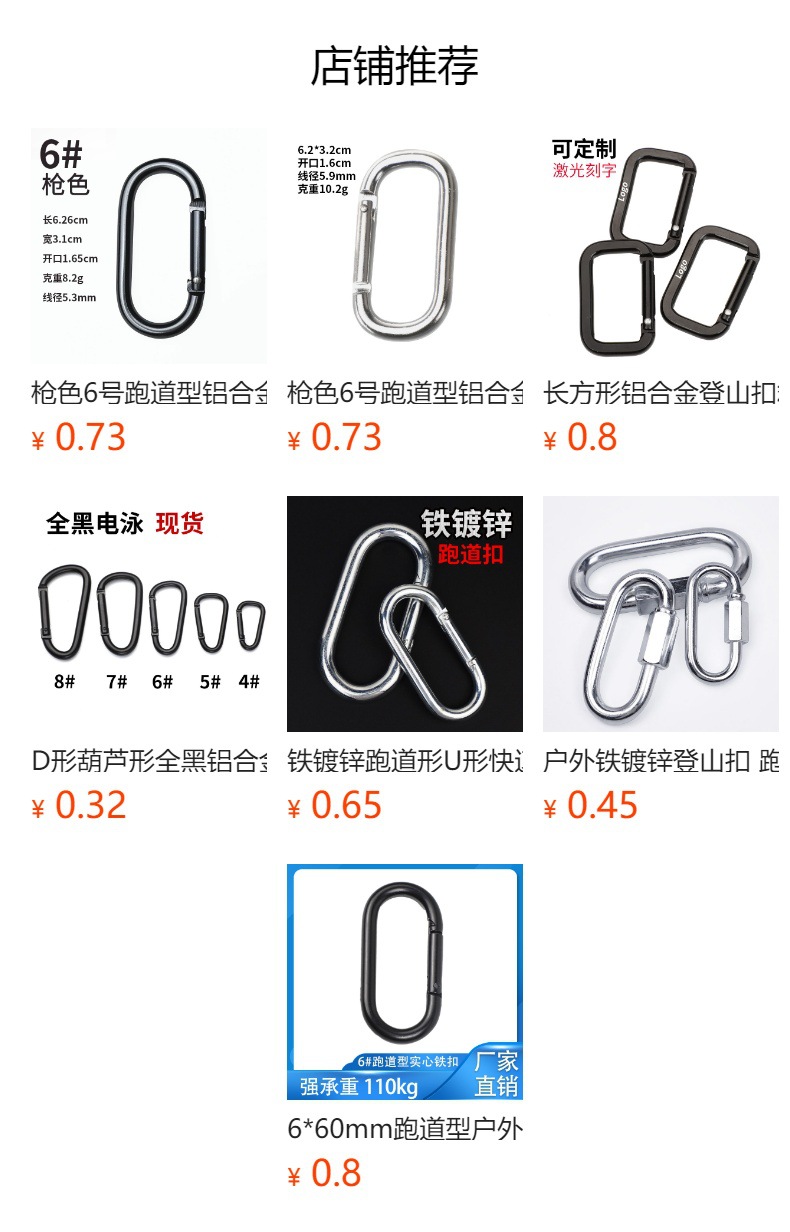 단색 알루미늄 합금 빠른 걸이 버클 연결 링 U 자형 활주로 배낭 외부 후크 타원형 후크 등산 버클 도매스토어 가기