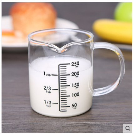 Keding 컵 제조업체는 내열 유리 측정 컵 유리 두꺼운 유리 우유 주스 컵을 졸업 컵으로 공급합니다.스토어 가기