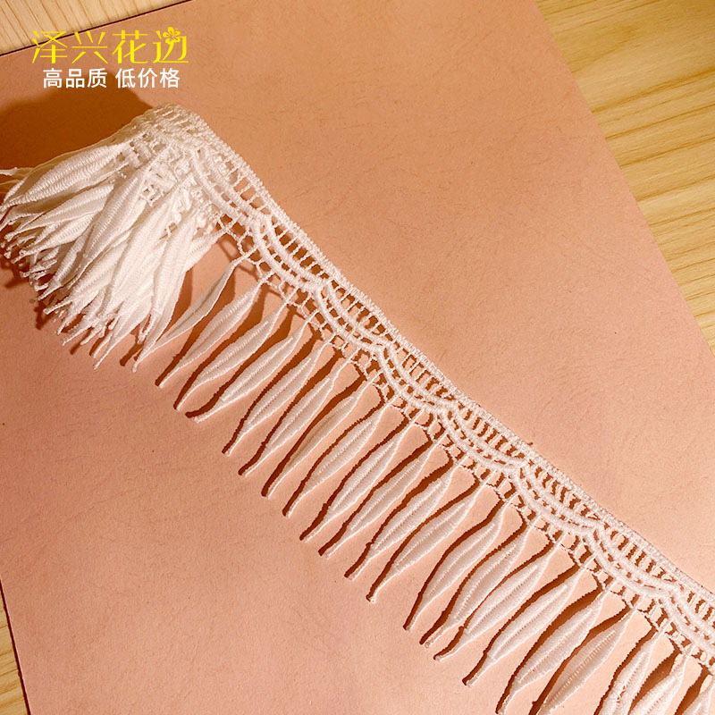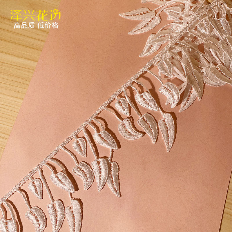 추운 느낌의 고추색 밀크 실크 프린지 자수 레이스, 폴리에스터 광택 수용성 의류 밑단 커튼 스카프 장식 레이스