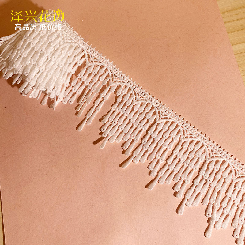 추운 느낌의 고추색 밀크 실크 프린지 자수 레이스, 폴리에스터 광택 수용성 의류 밑단 커튼 스카프 장식 레이스스토어 가기