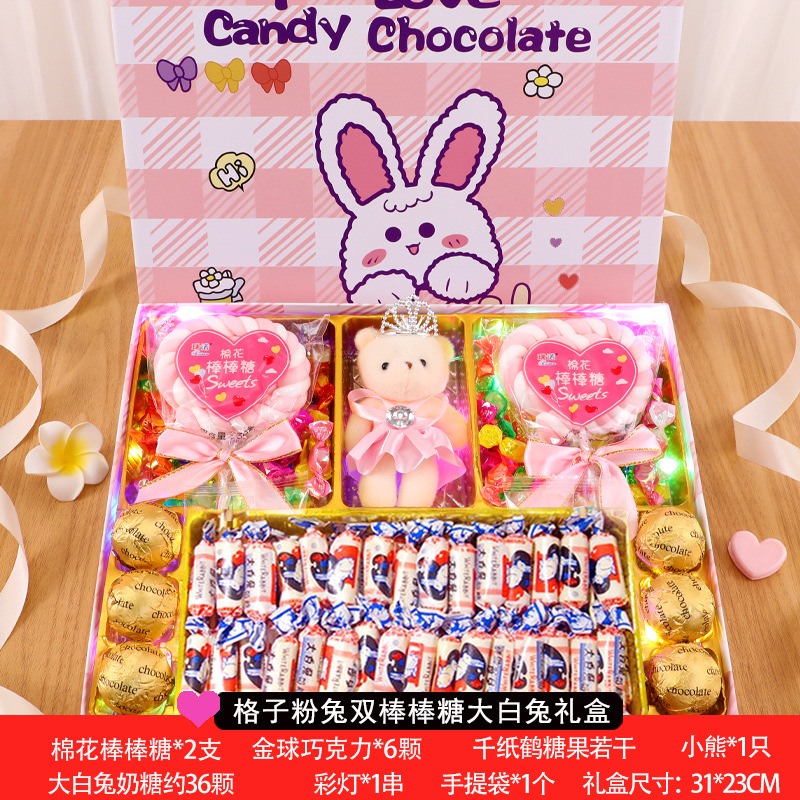 • 핑크 토끼-더블 스틱 마시멜로 화이트 토끼 선물 상자