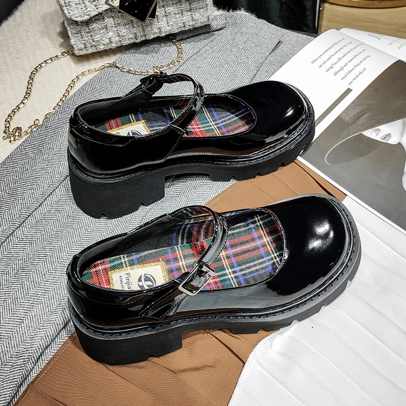 2021 New Mary Jane 신발 여성용 가을 두꺼운 밑창 대학 스타일 소형 싱글 레이어 신발 슬리밍 레트로 라운드 토 소프트 소녀의 여성용 작은 가죽 신발
