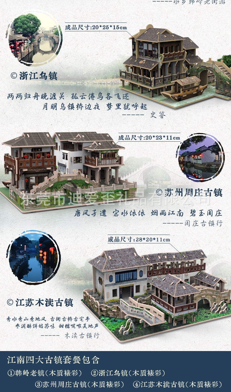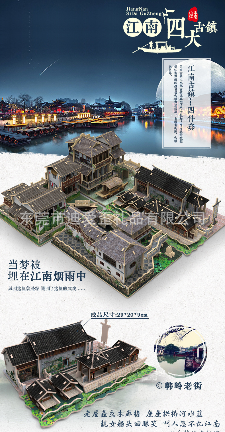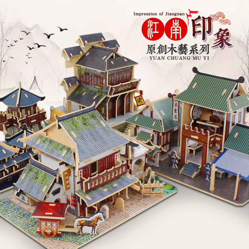 Di Ai Wei Jiangnan 건물 나무 3d 스테레오 퍼즐 도매 Huiju 모델 어린이 손으로 조립 교육 장난감스토어 가기