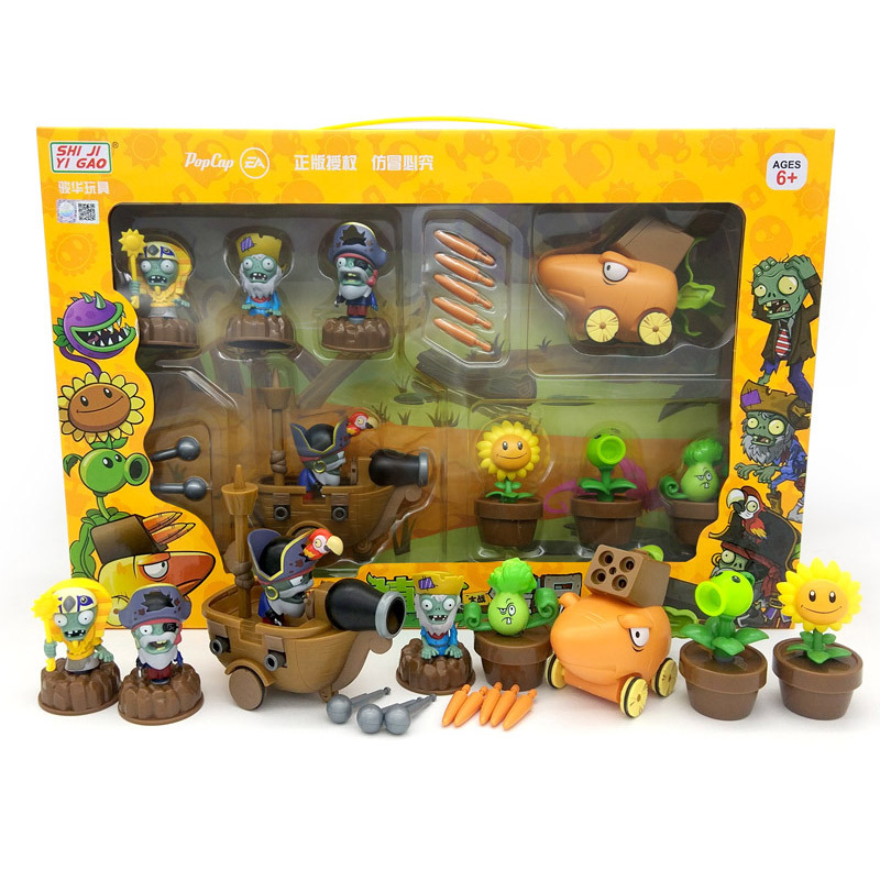 진짜 식물 대 좀비 장난감 세트 소년 관성 다시 자동차 인형 어린이 선물 상자 풀 세트스토어 가기