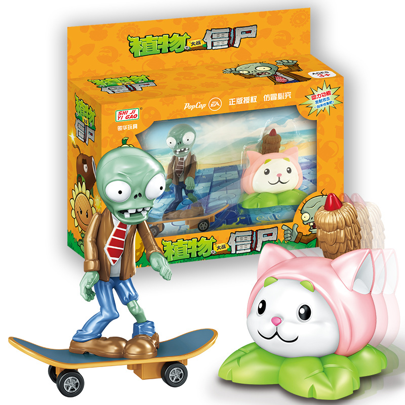 진짜 식물 대 좀비 장난감 세트 소년 관성 다시 자동차 인형 어린이 선물 상자 풀 세트