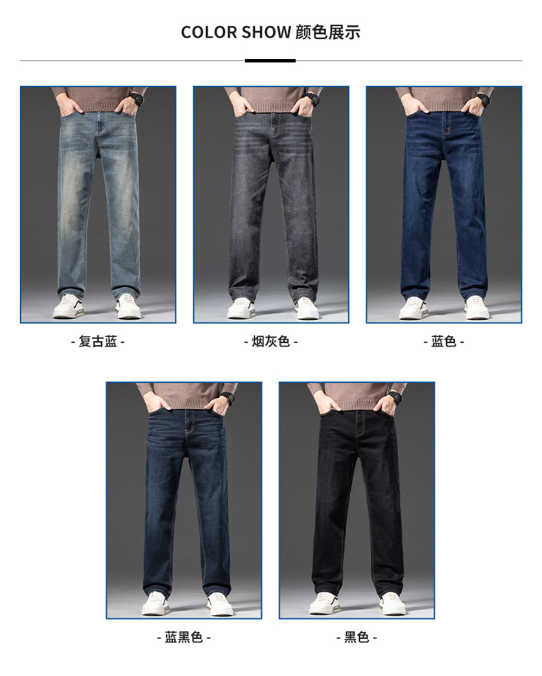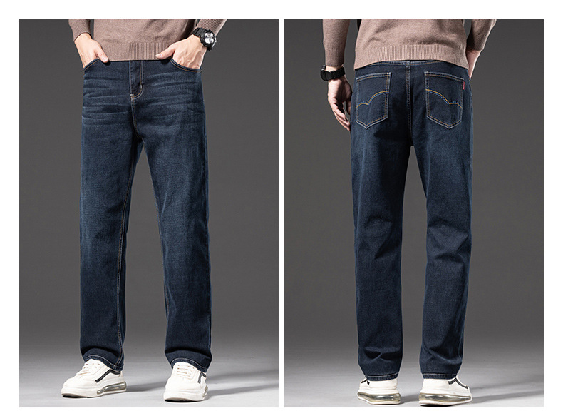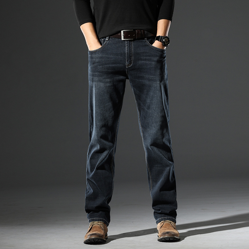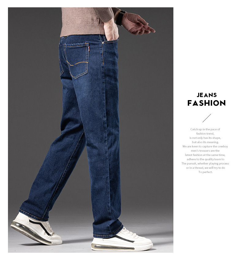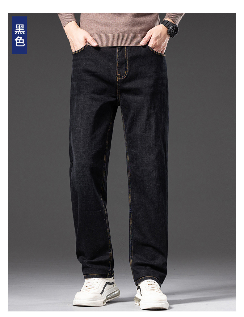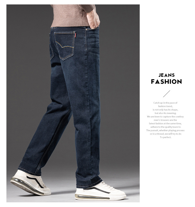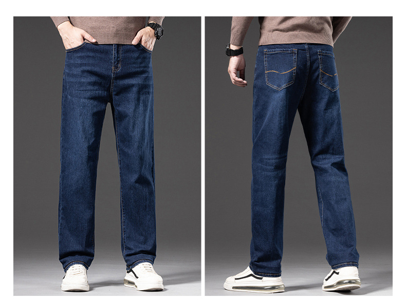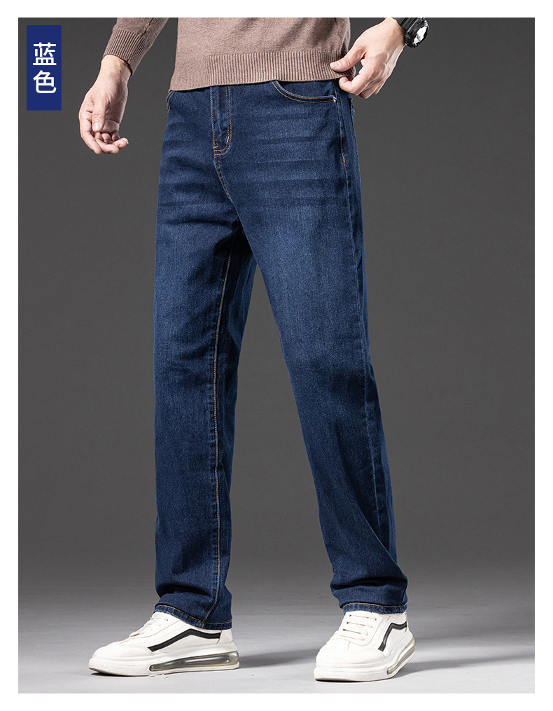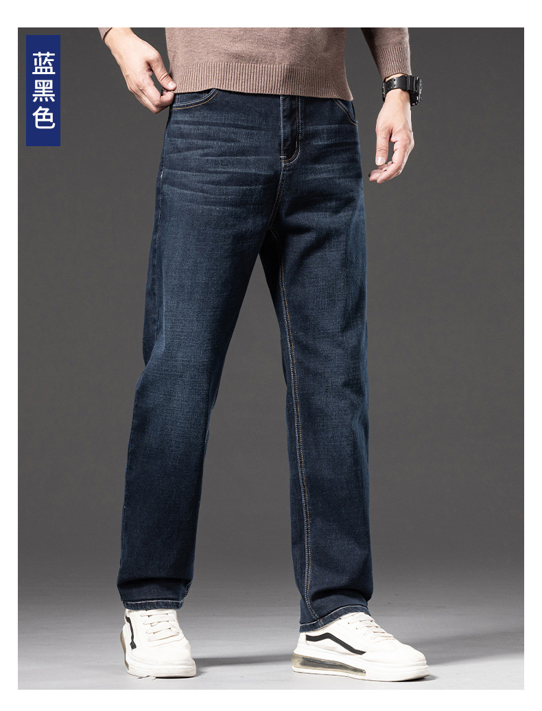 봄 가을 신상 남성용 스트레치 비즈니스 스트레이트 데님 팬츠 남성복 긴바지 기모 안감 두꺼운 바지