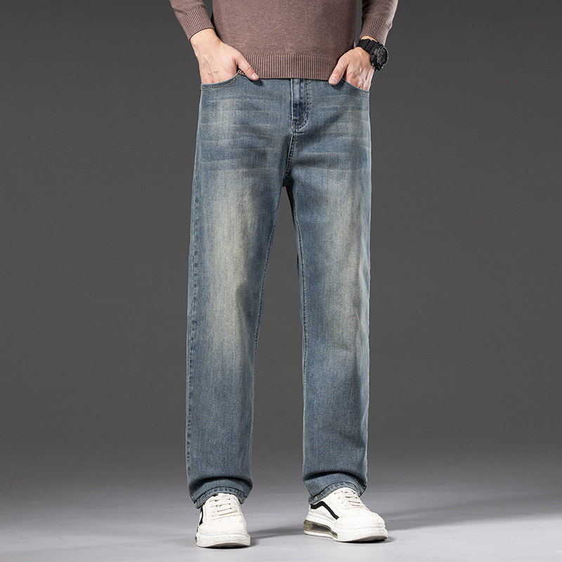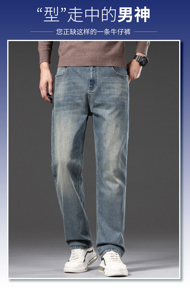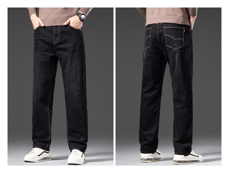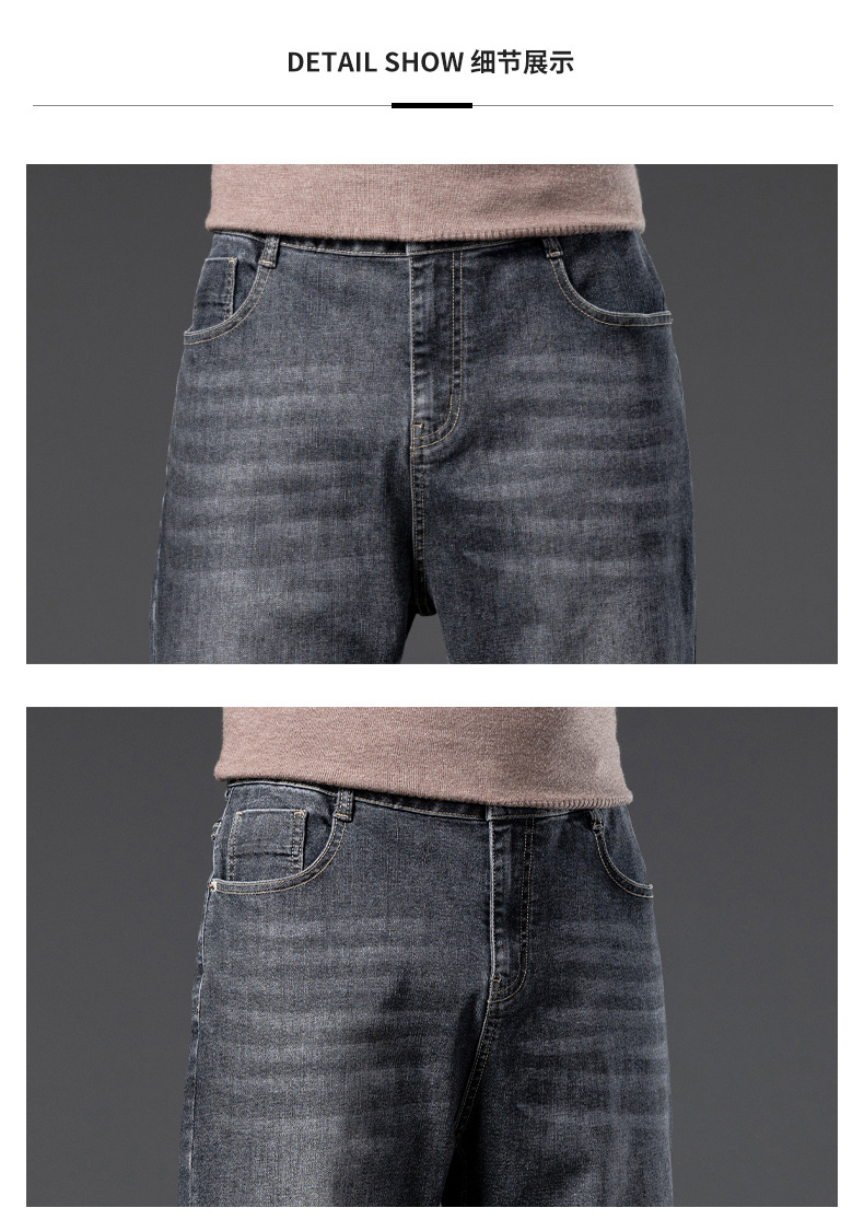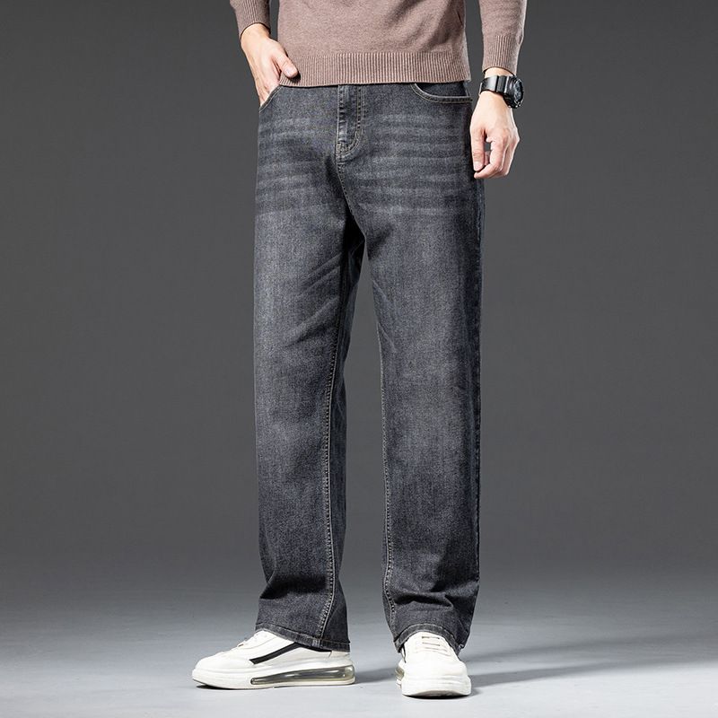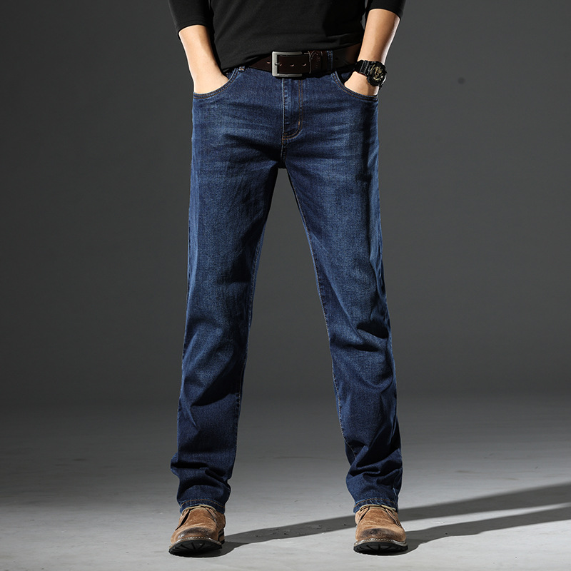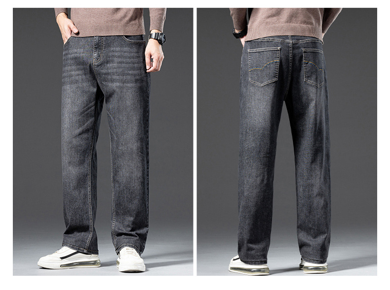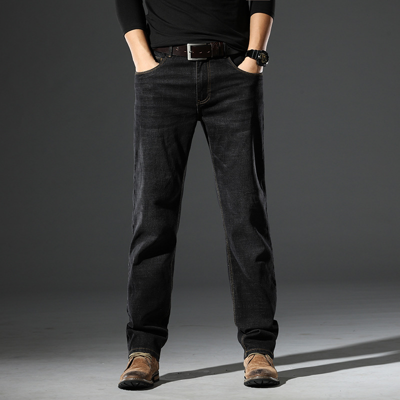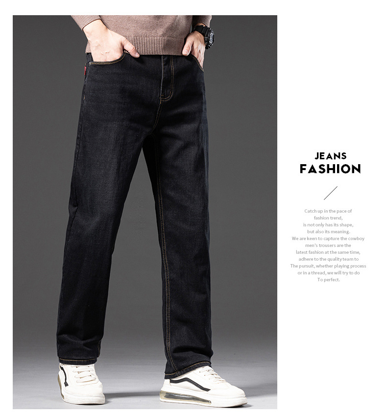 봄 가을 신상 남성용 스트레치 비즈니스 스트레이트 데님 팬츠 남성복 긴바지 기모 안감 두꺼운 바지