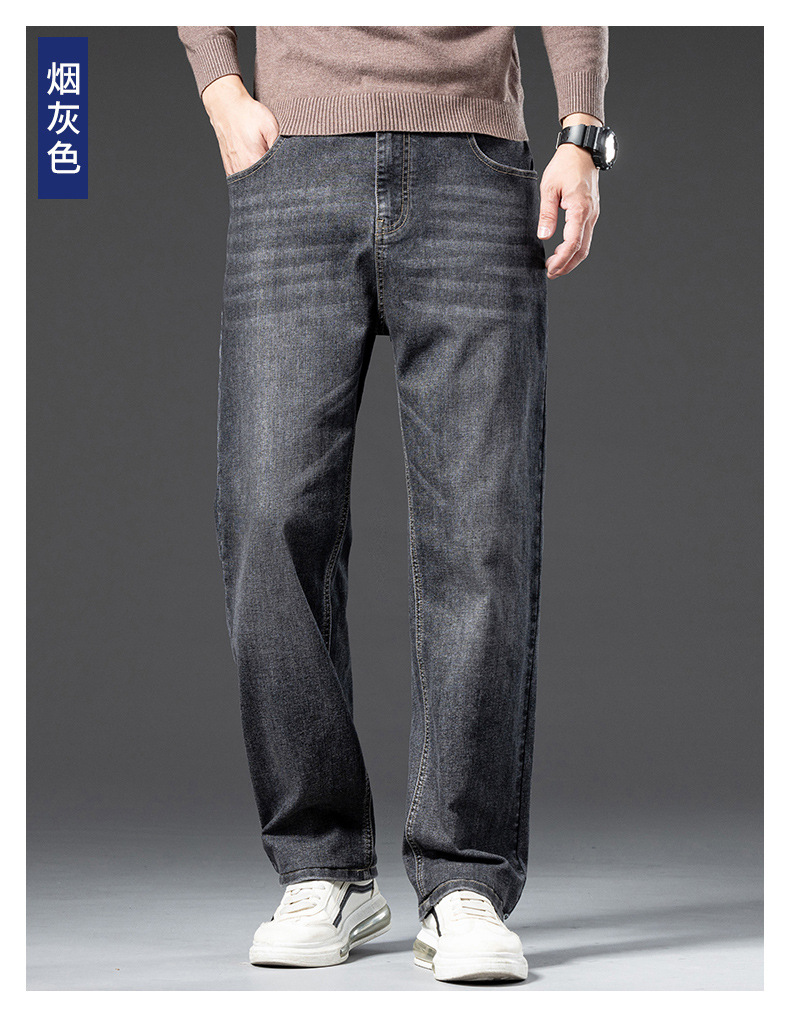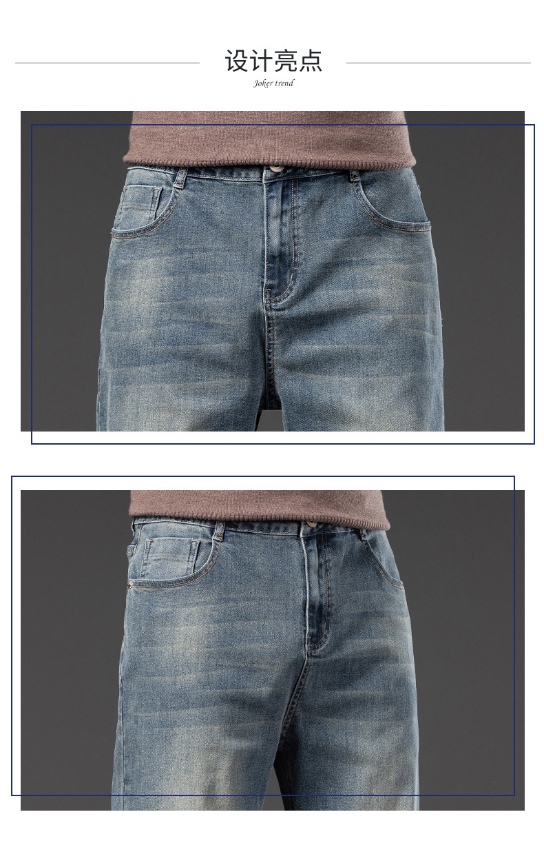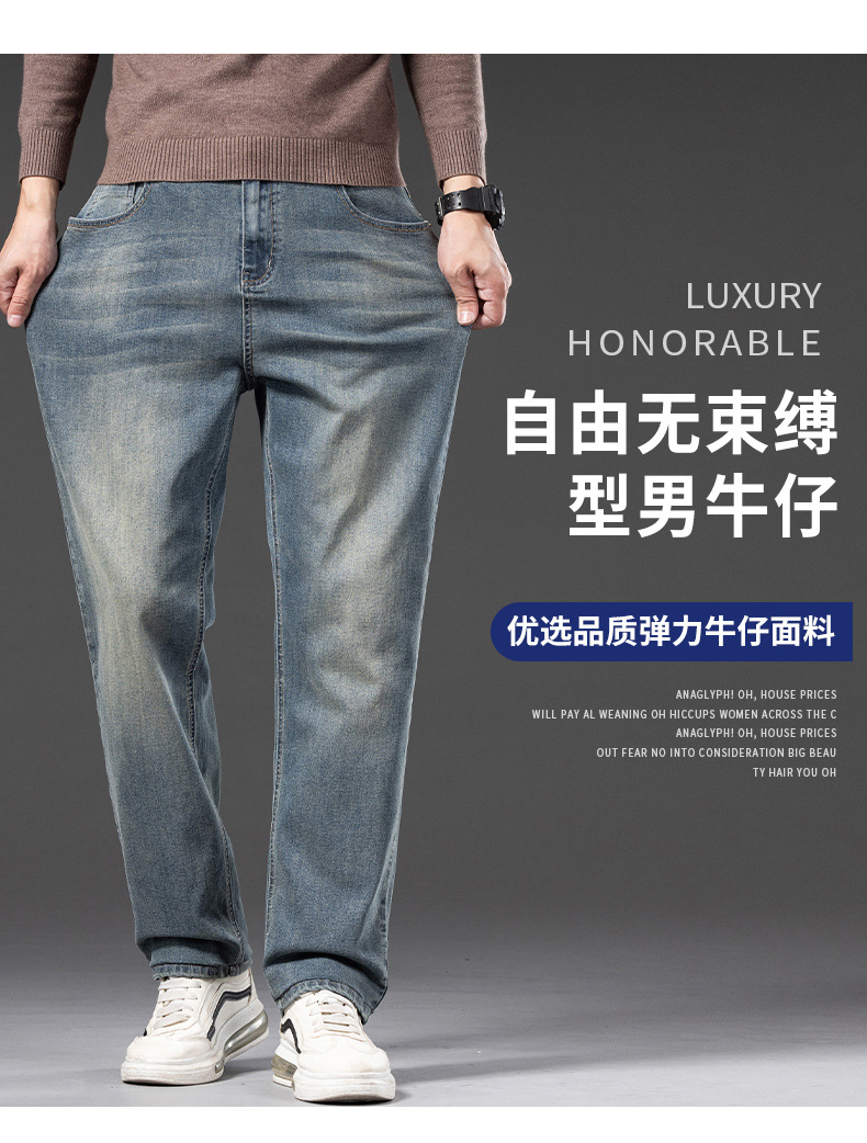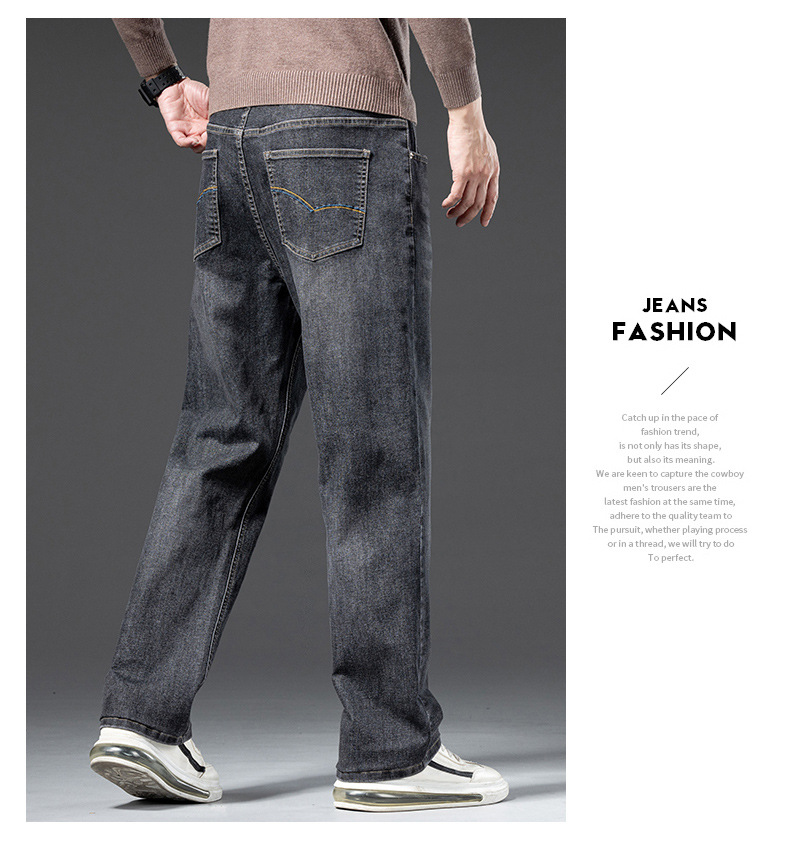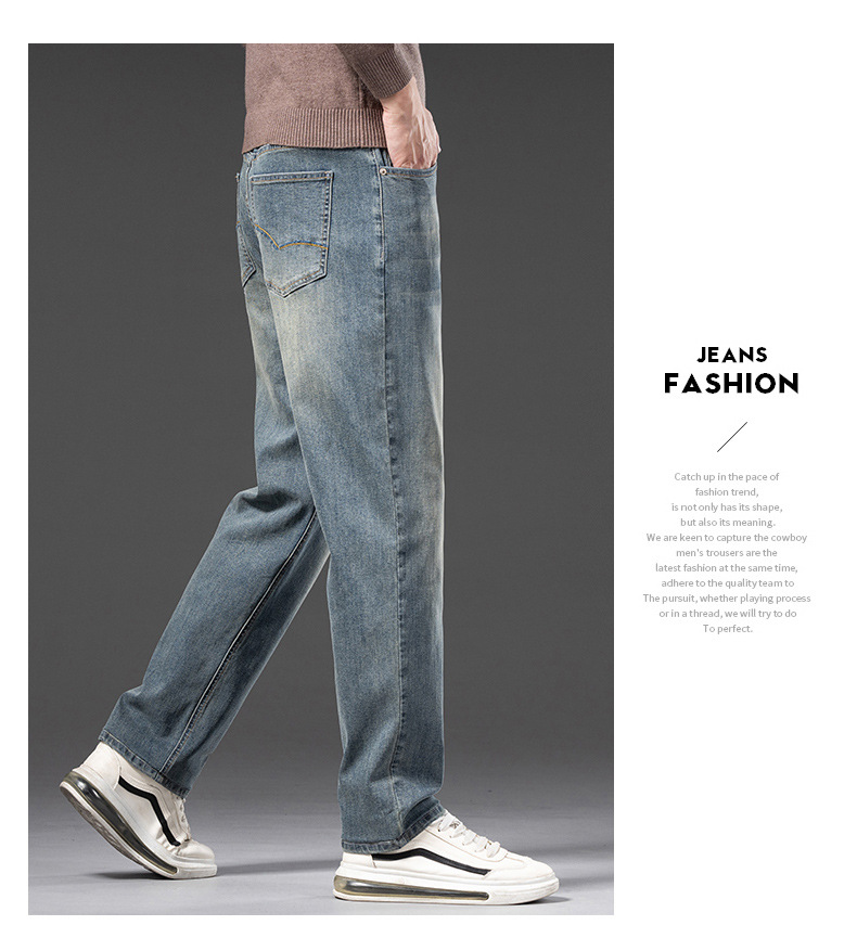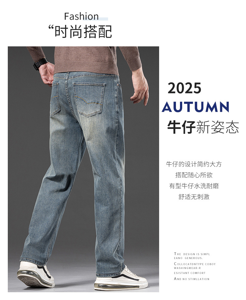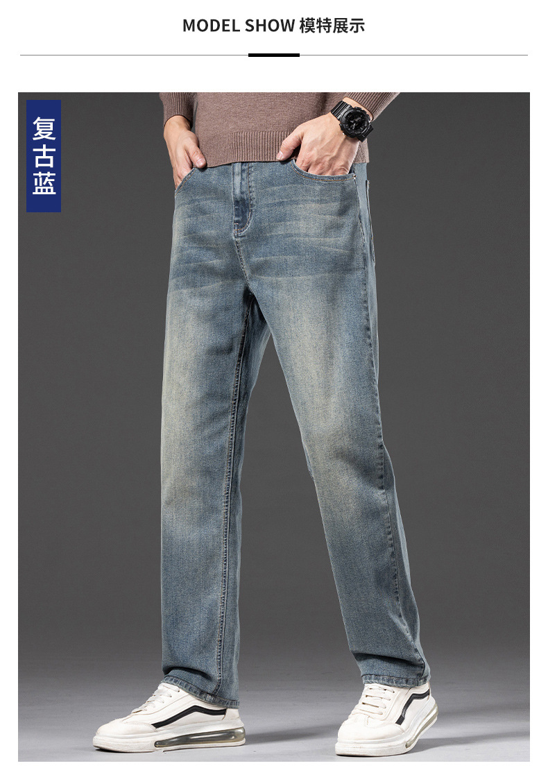 봄 가을 신상 남성용 스트레치 비즈니스 스트레이트 데님 팬츠 남성복 긴바지 기모 안감 두꺼운 바지