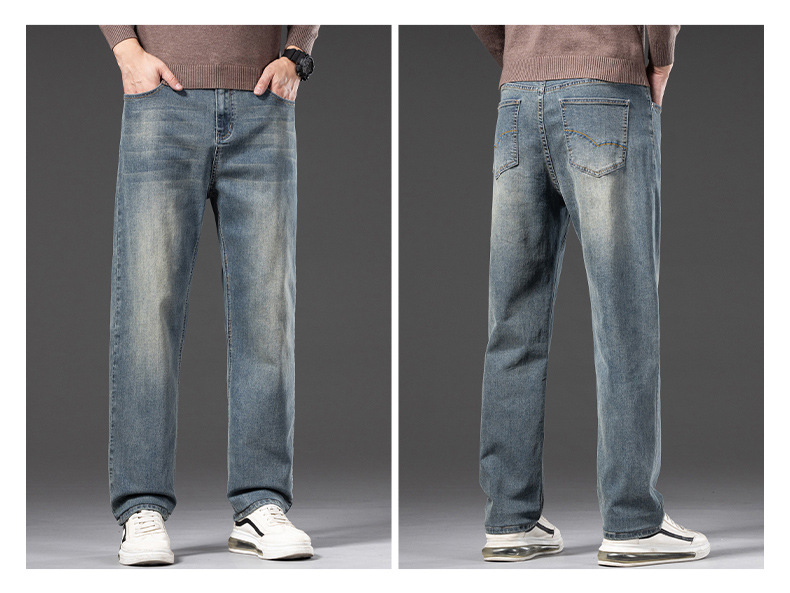 봄 가을 신상 남성용 스트레치 비즈니스 스트레이트 데님 팬츠 남성복 긴바지 기모 안감 두꺼운 바지스토어 가기