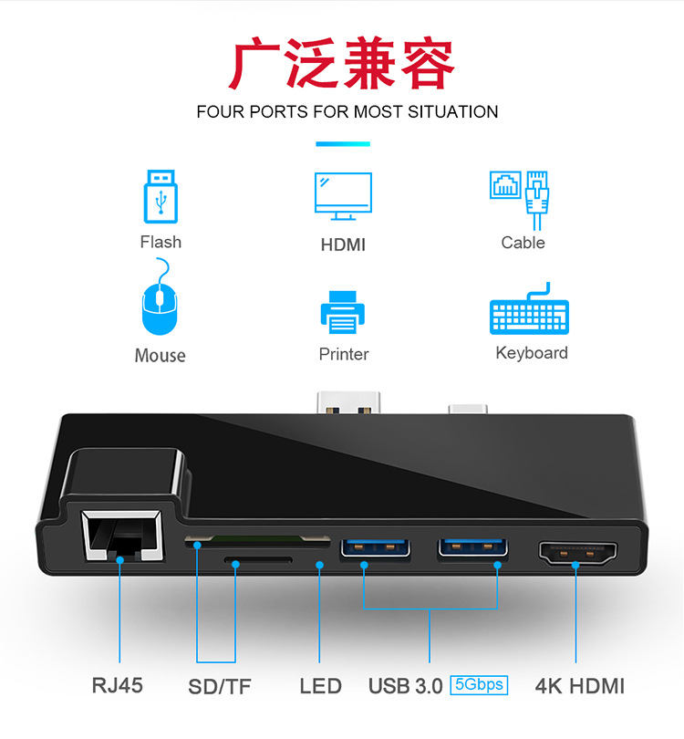 국경 간 표면 프로 도킹 스테이션 USB 허브 허브 USB 분할 선 변환기 3.0 확장 도크 제조업체