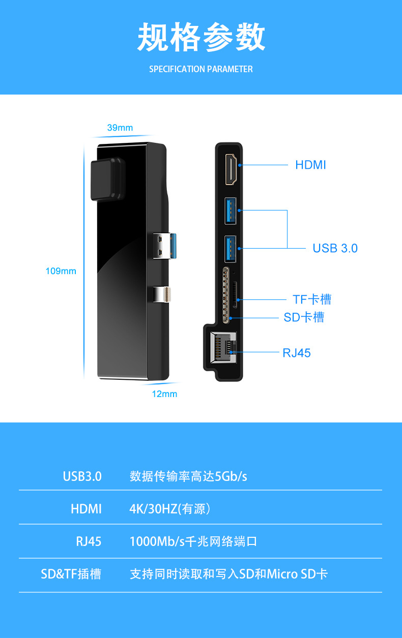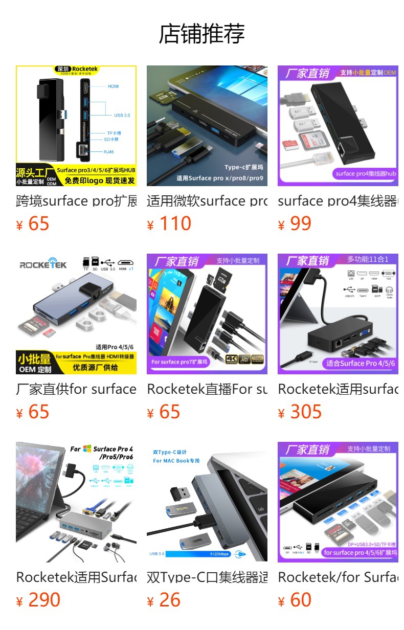 국경 간 표면 프로 도킹 스테이션 USB 허브 허브 USB 분할 선 변환기 3.0 확장 도크 제조업체스토어 가기
