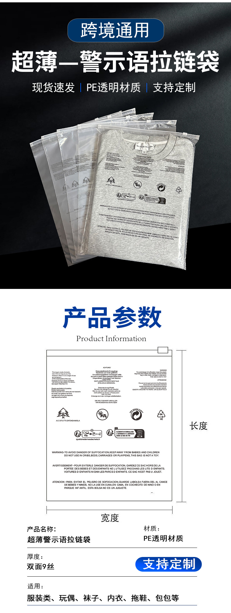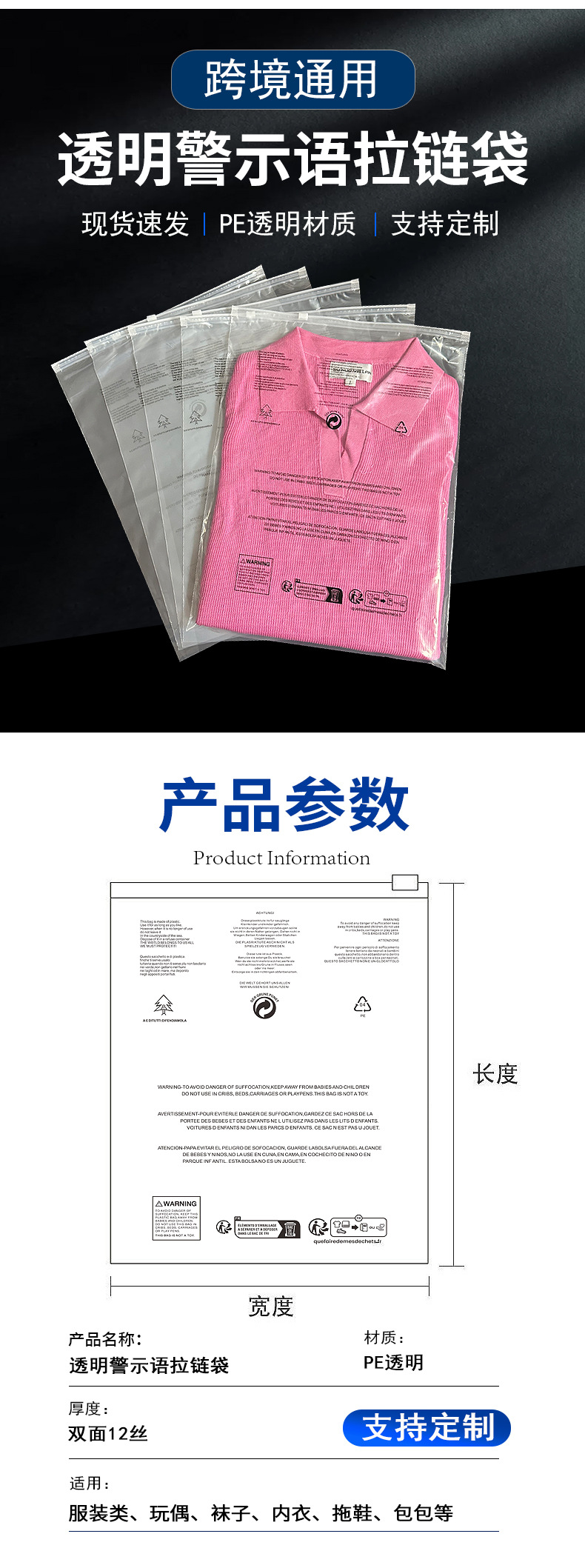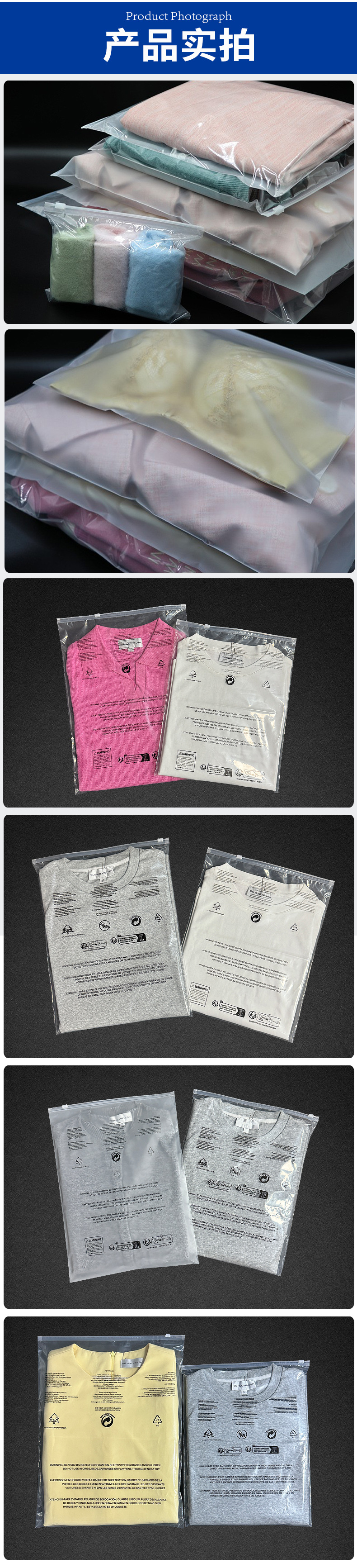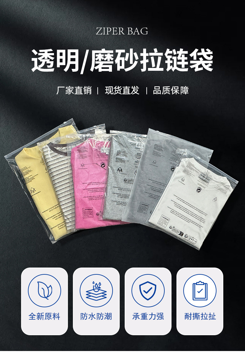 공장 직판 가격 바지 잠옷 모자 스카프 반투명 포장 백 CPE 크로스보더 경고 문구 반투명 지퍼 백