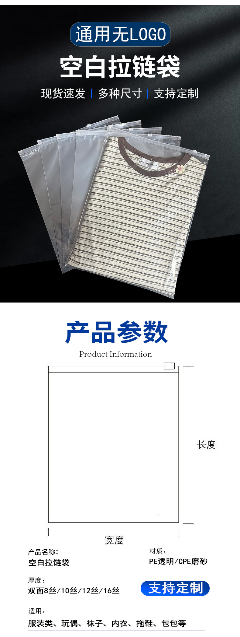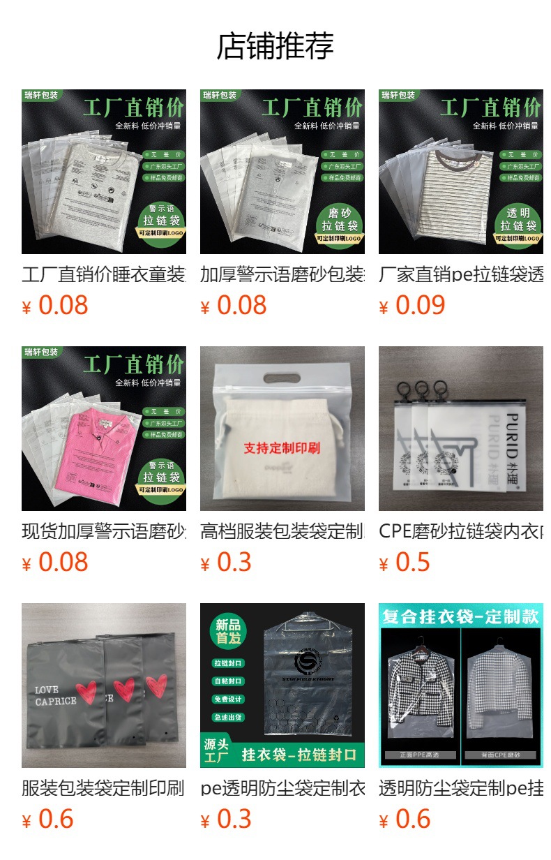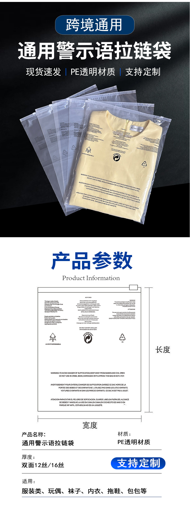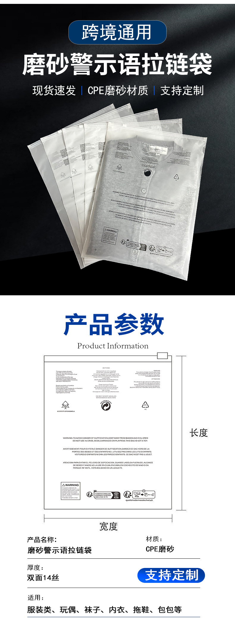 공장 직판 가격 바지 잠옷 모자 스카프 반투명 포장 백 CPE 크로스보더 경고 문구 반투명 지퍼 백