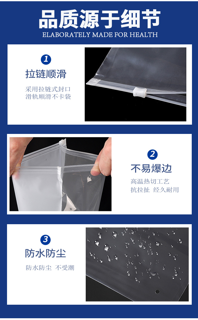 공장 직판 가격 바지 잠옷 모자 스카프 반투명 포장 백 CPE 크로스보더 경고 문구 반투명 지퍼 백스토어 가기