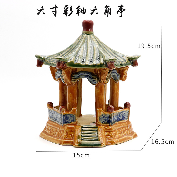 六寸彩釉单层亭 14*16*20cm 重约1173克